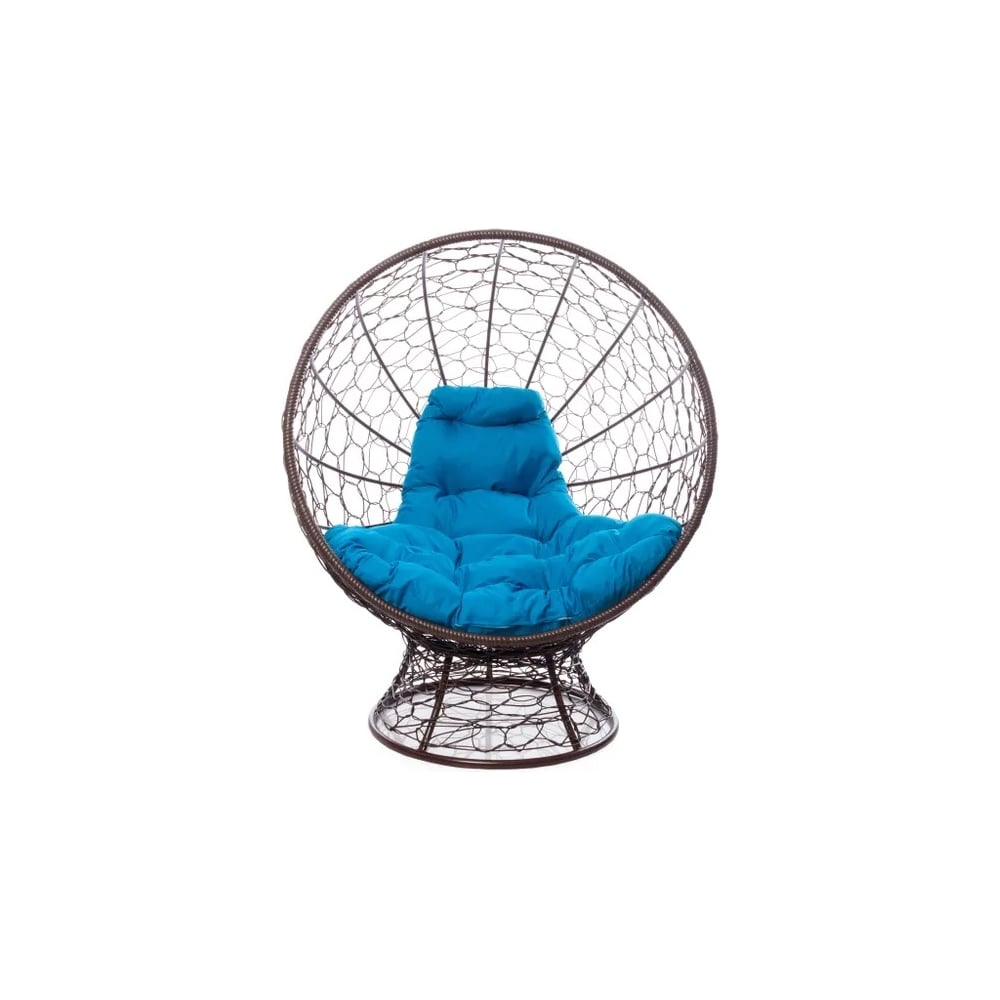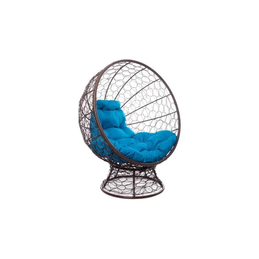 Кресло M-GROUP КОКОС на подставке с ротангом коричневое, голубая подушка 11590203