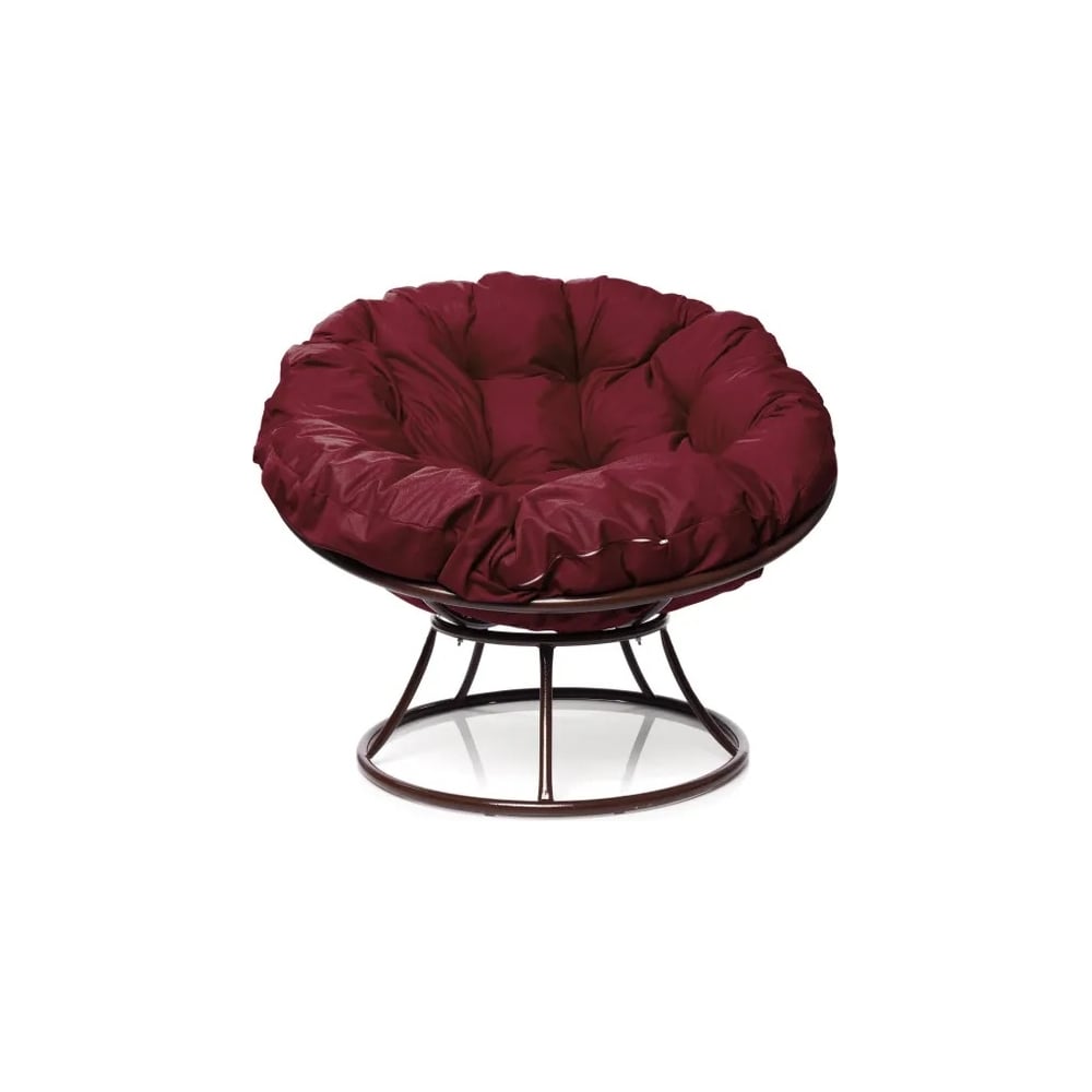 Кресло M-GROUP ПАПАСАН без ротанга коричневое, бордовая подушка 12010202