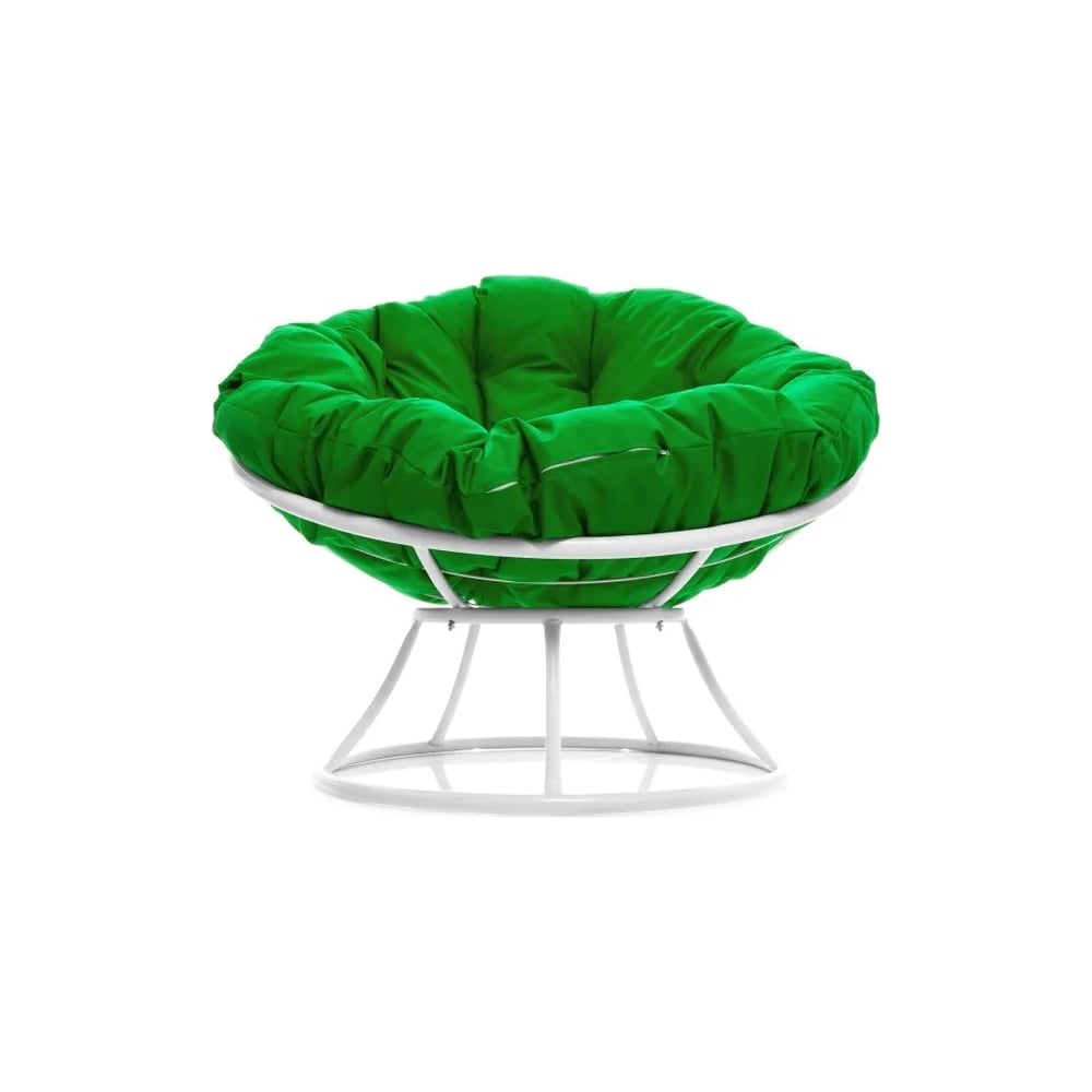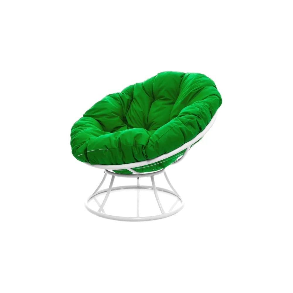 Кресло M-GROUP ПАПАСАН без ротанга белое, зелёная подушка 12010104