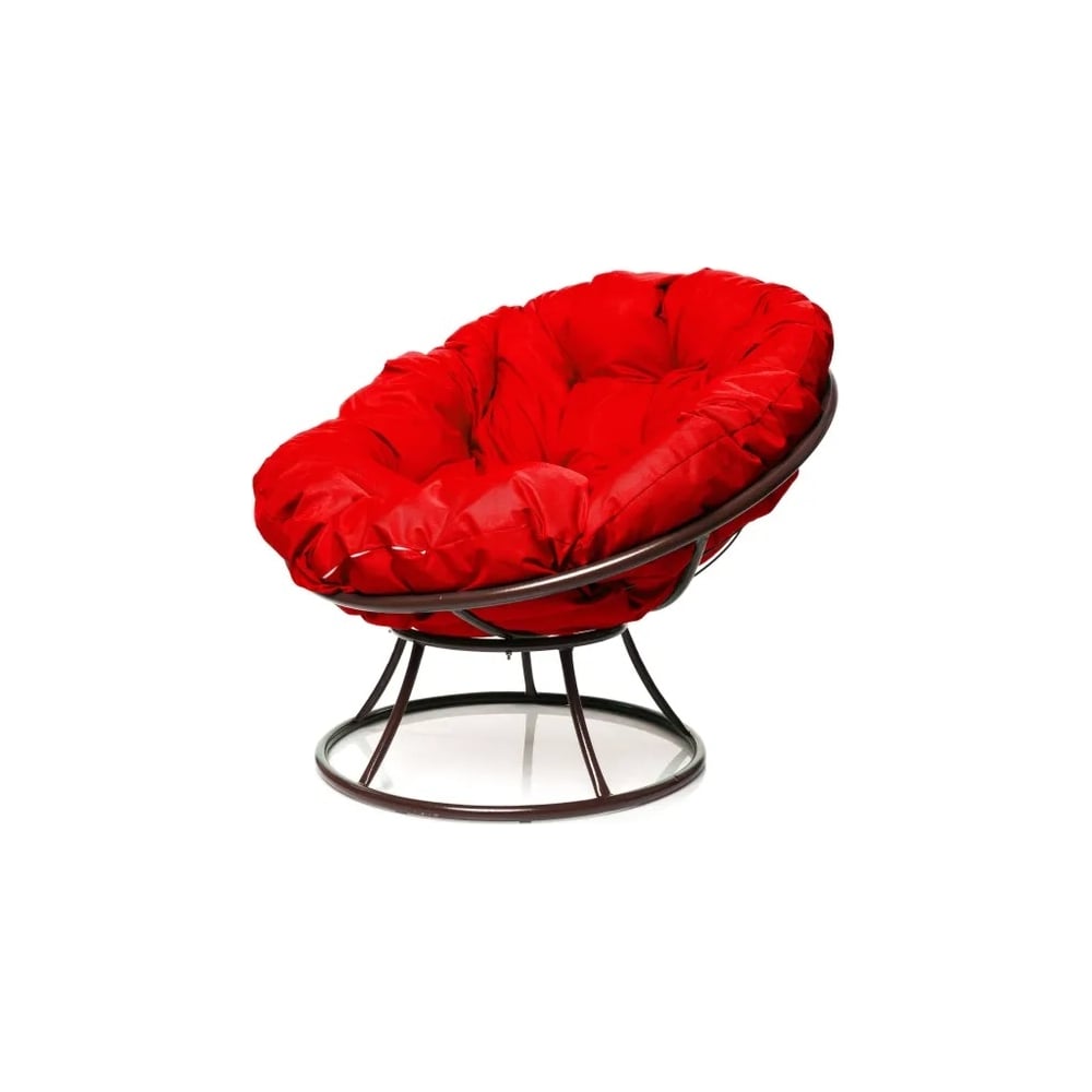 Кресло M-GROUP ПАПАСАН без ротанга коричневое, красная подушка 12010206