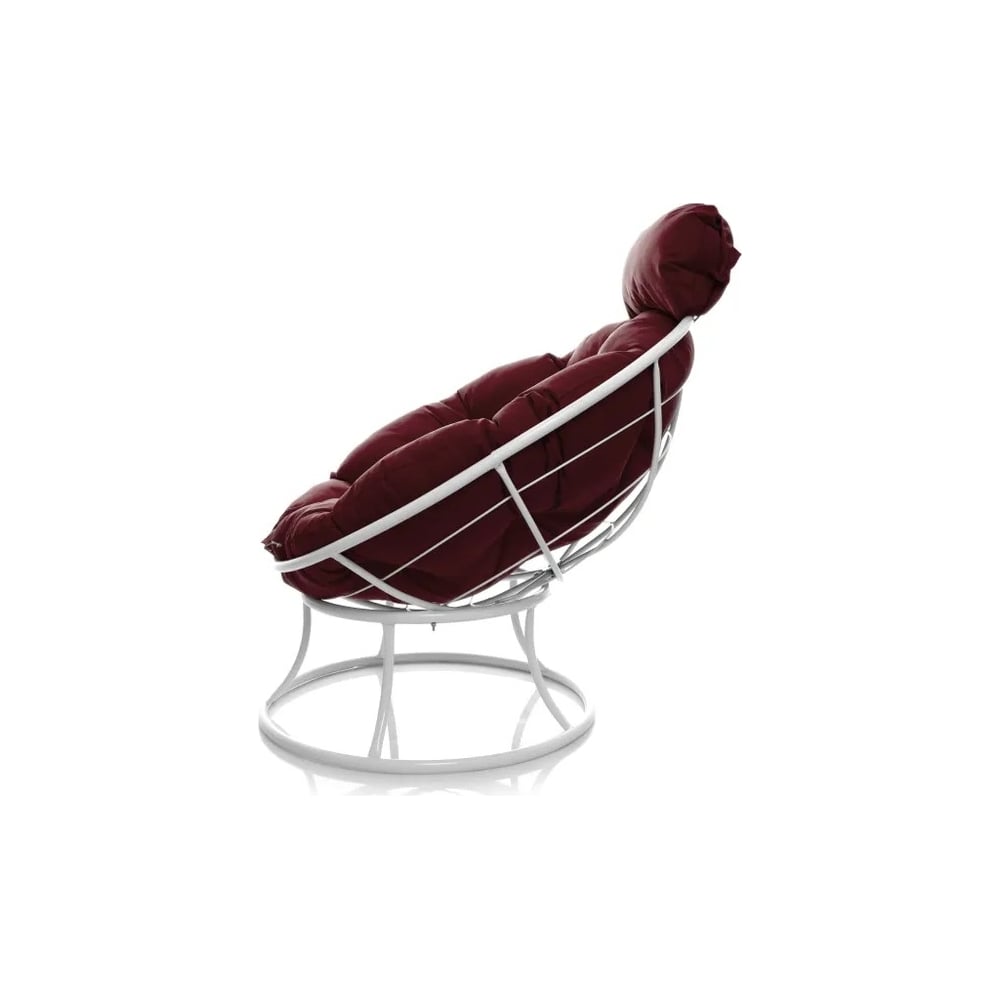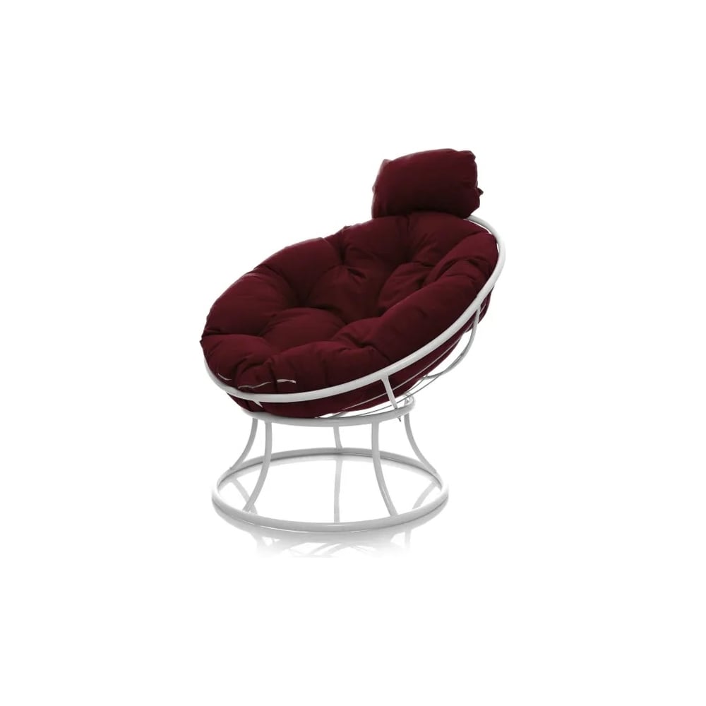 Кресло M-GROUP ПАПАСАН мини без ротанга белое, бордовая подушка 12060102