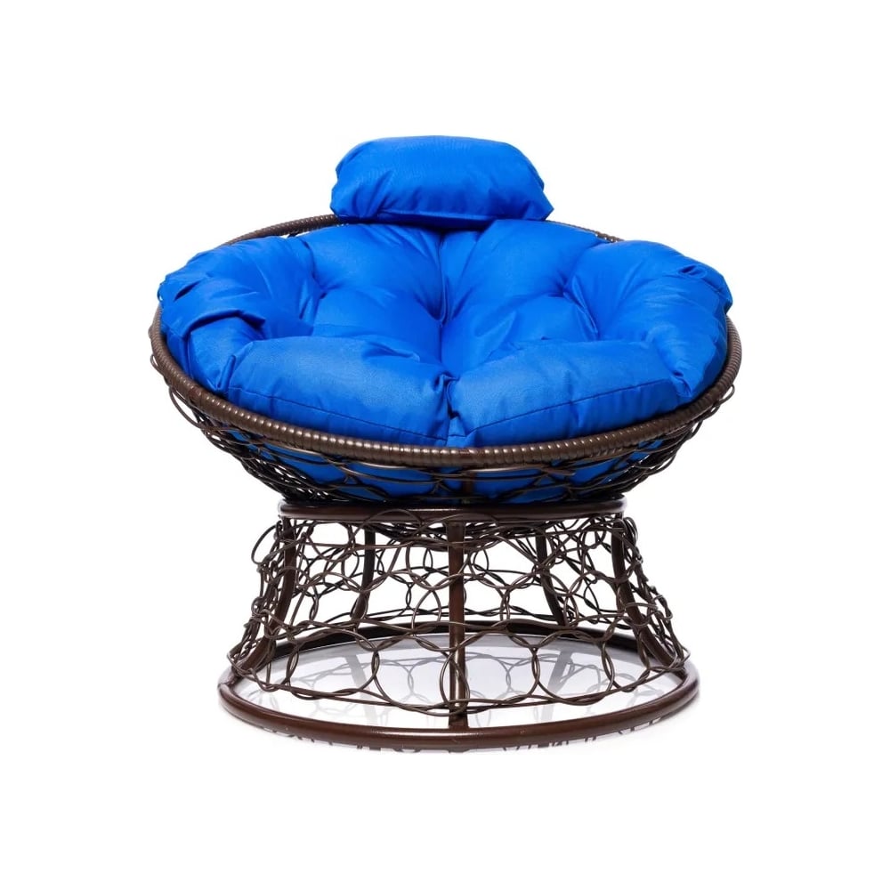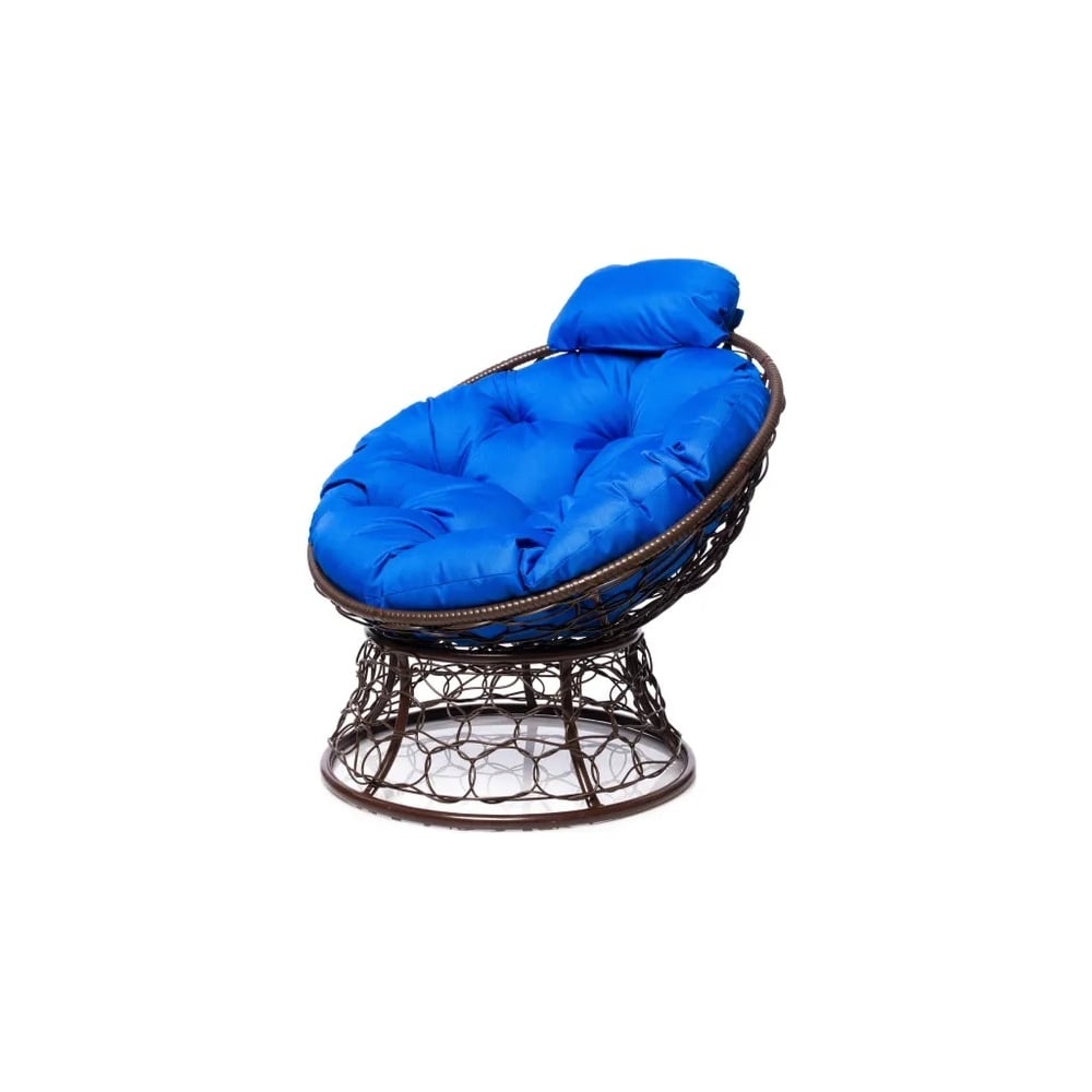 Кресло M-GROUP ПАПАСАН мини с ротангом коричневое, синяя подушка 12070210