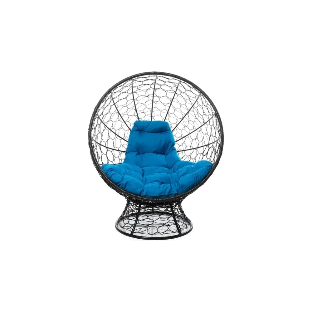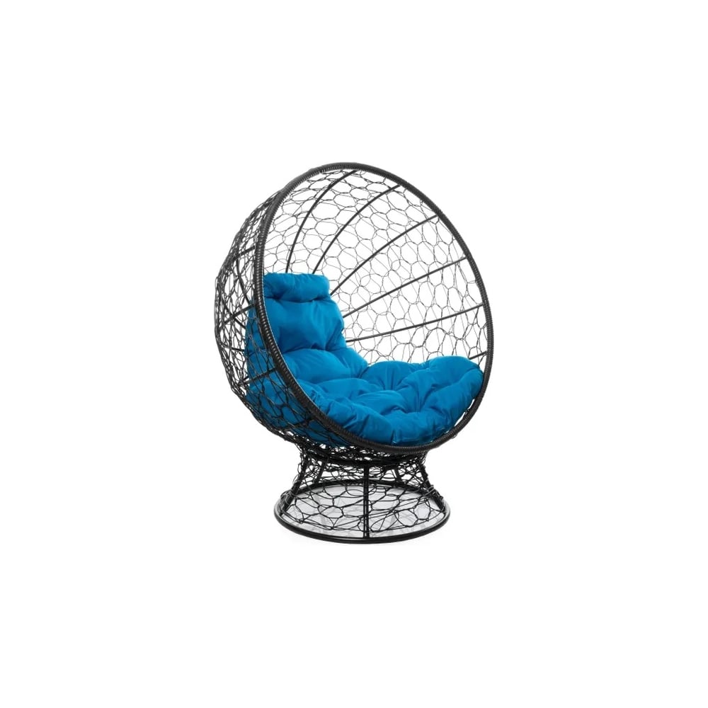 Кресло M-GROUP КОКОС на подставке с ротангом чёрное, голубая подушка 11590403