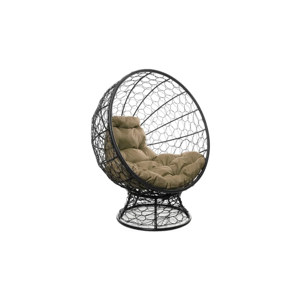 Кресло M-GROUP КОКОС на подставке с ротангом чёрное, бежевая подушка 11590401