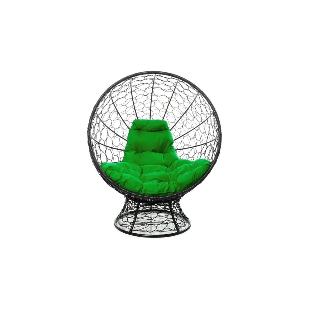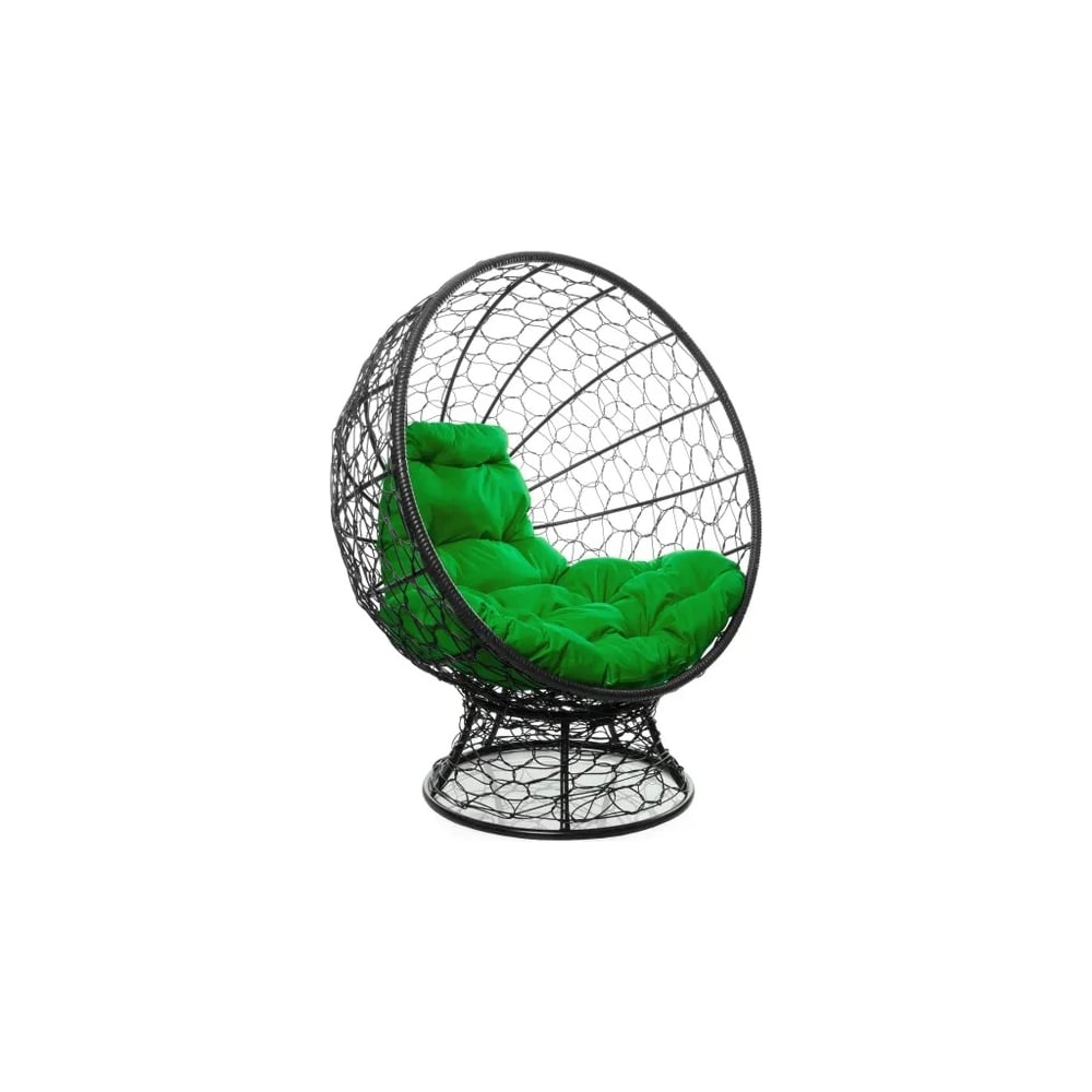 Кресло M-GROUP КОКОС на подставке с ротангом чёрное, зелёная подушка 11590404