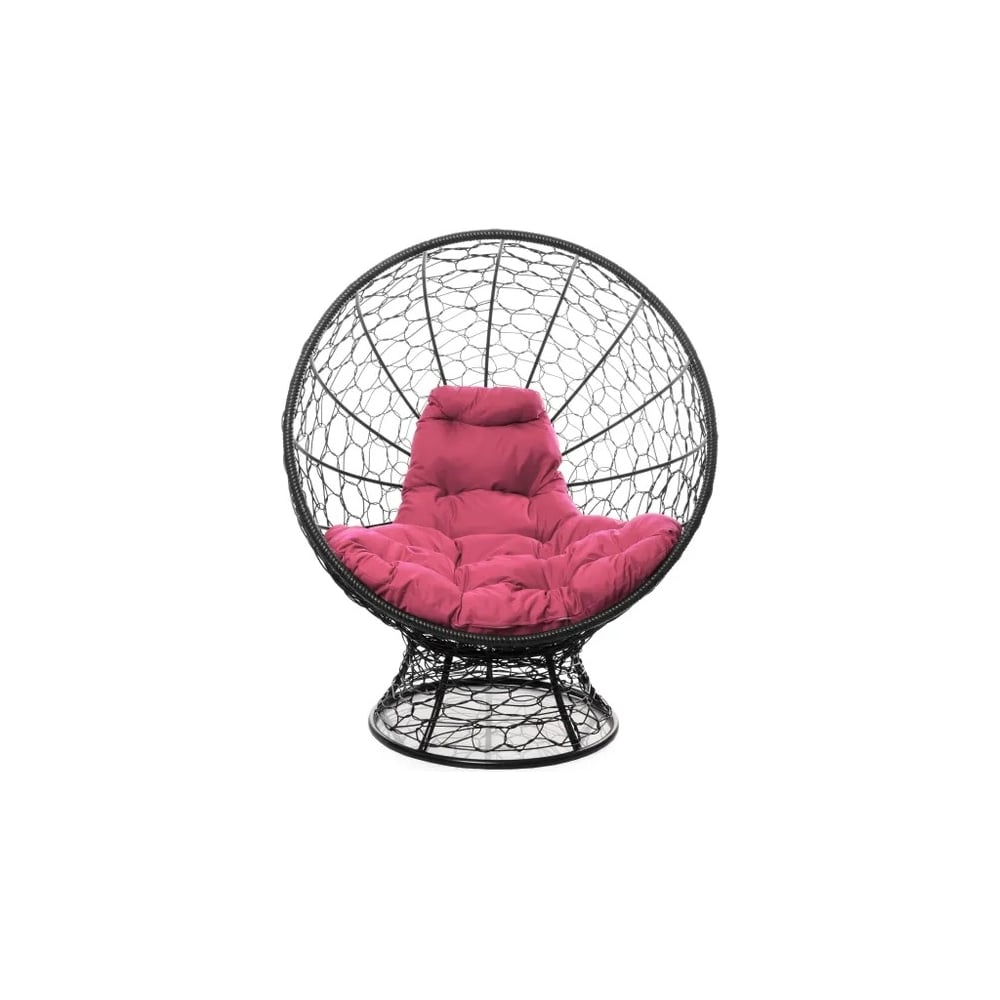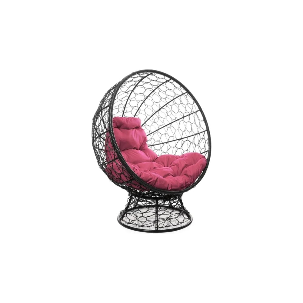Кресло M-GROUP КОКОС на подставке с ротангом чёрное, розовая подушка 11590408