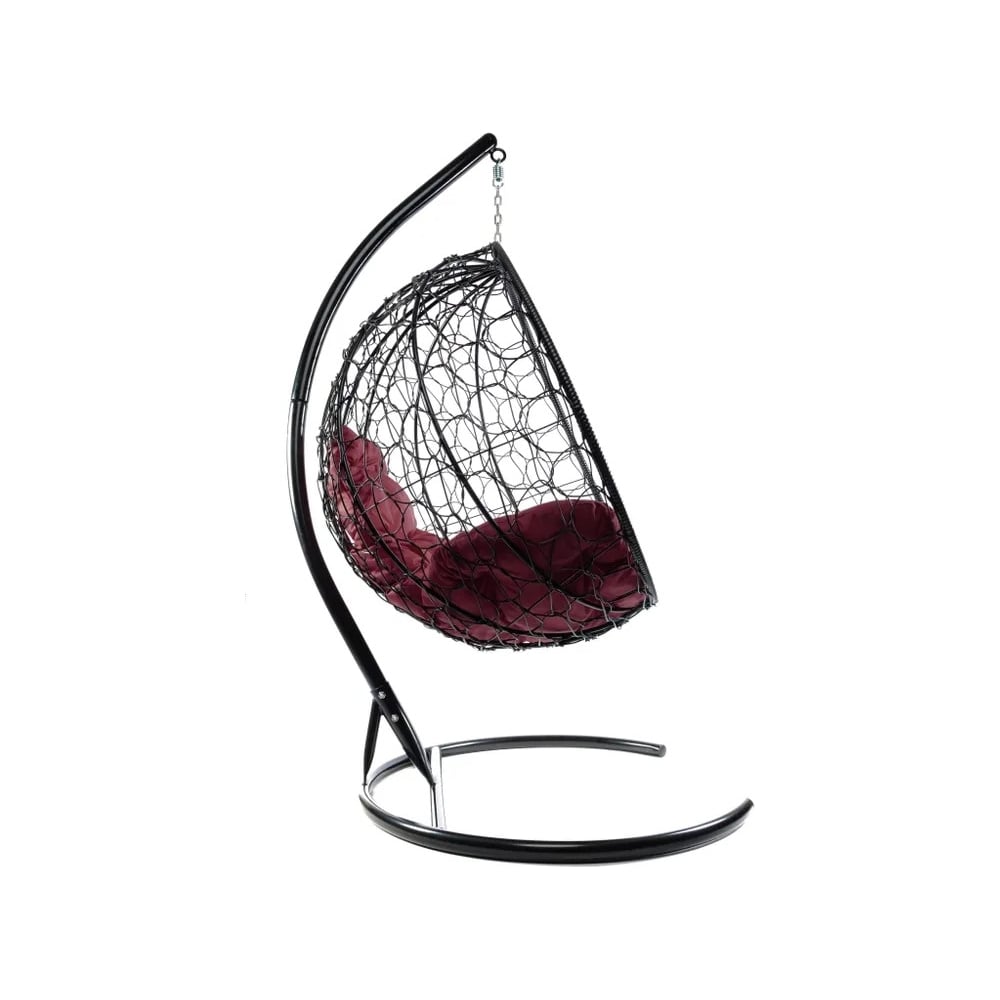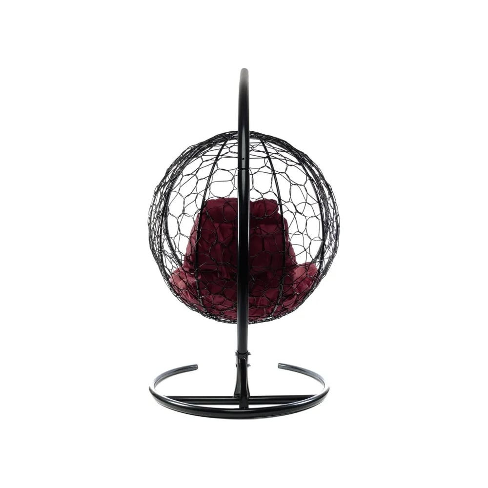 Подвесное кресло M-GROUP КРУГ с ротангом чёрное, бордовая подушка 11050402