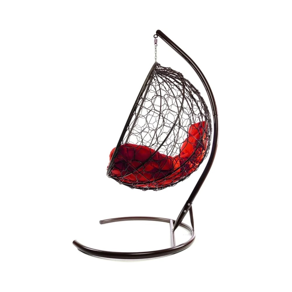Подвесное кресло M-GROUP КРУГ с ротангом коричневое, красная подушка 11050206