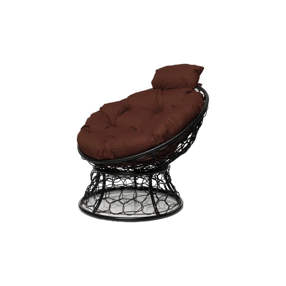 Кресло M-GROUP ПАПАСАН мини с ротангом чёрное, коричневая подушка 12070405