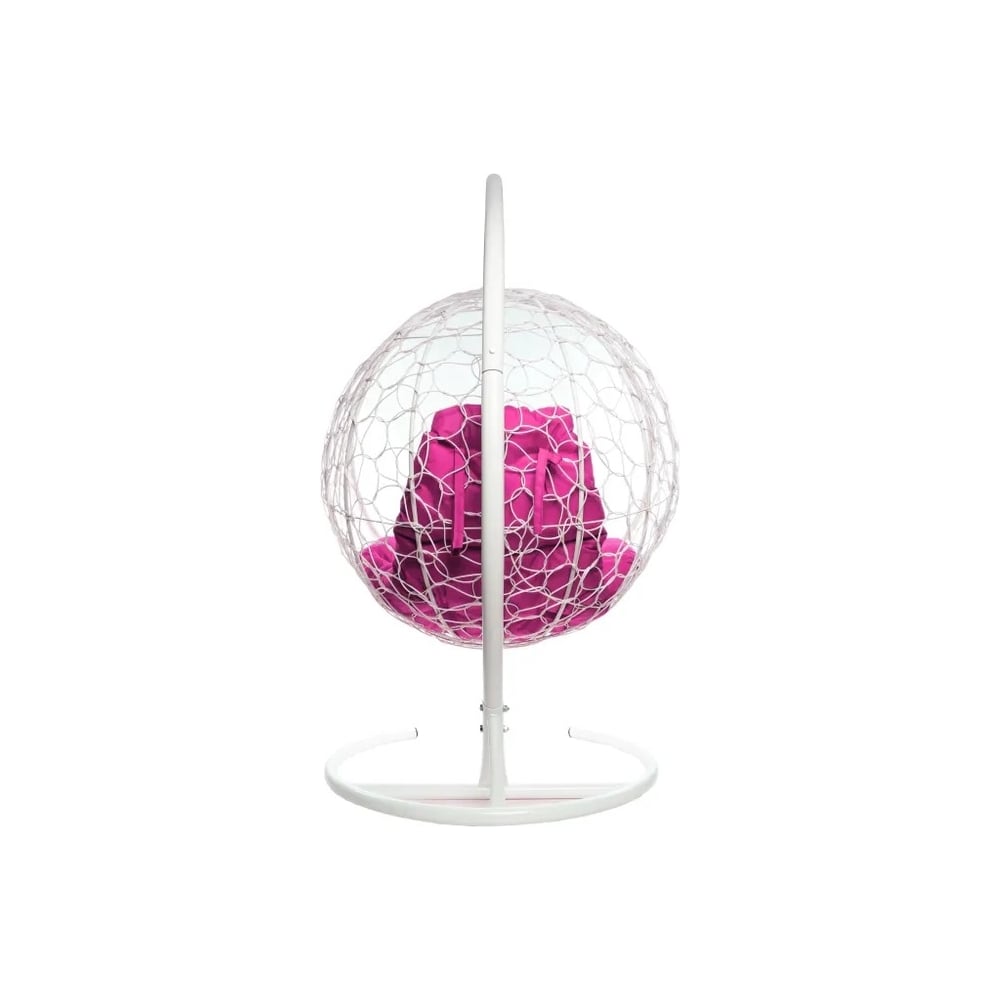 Подвесное кресло M-GROUP КРУГ с ротангом белое, розовая подушка 11050108