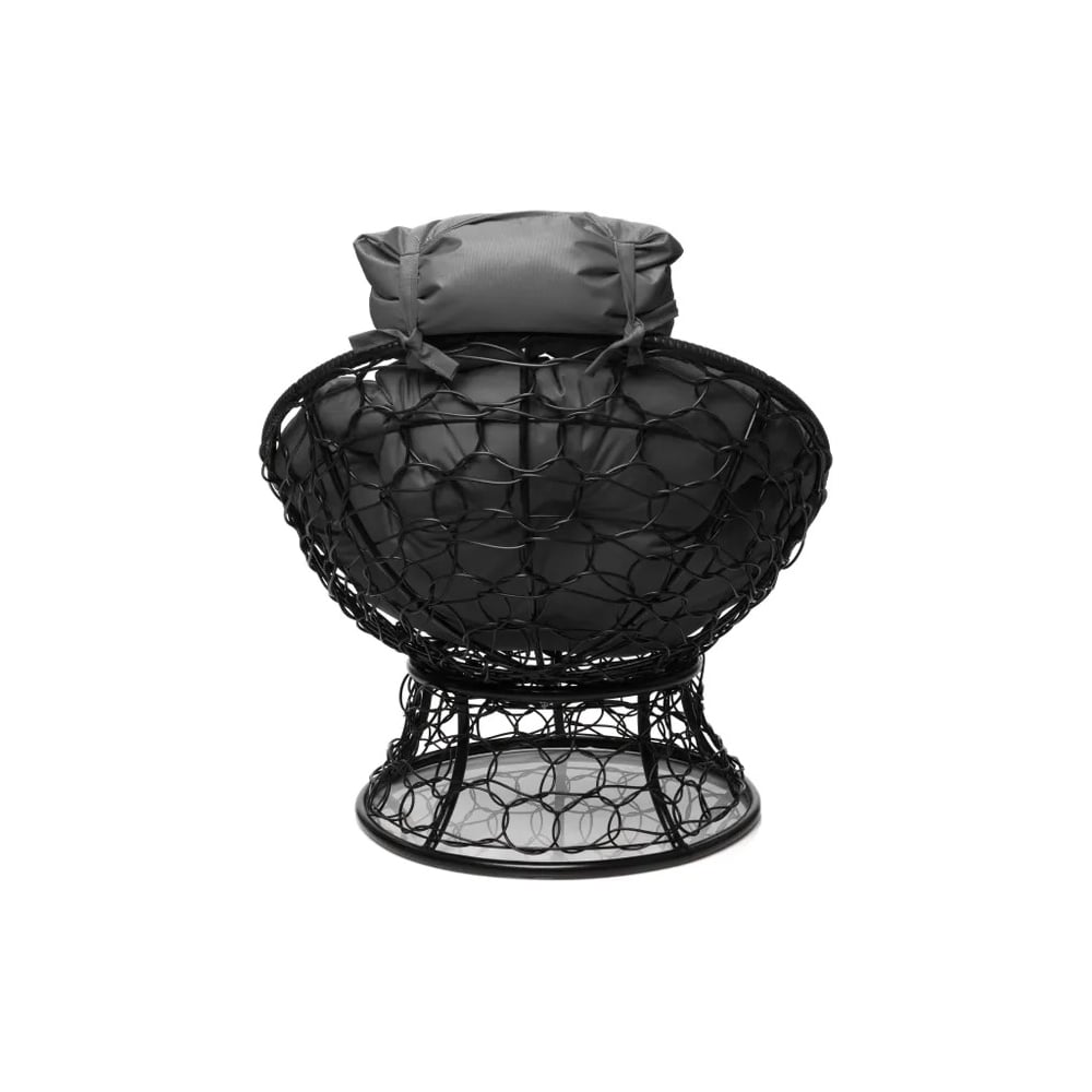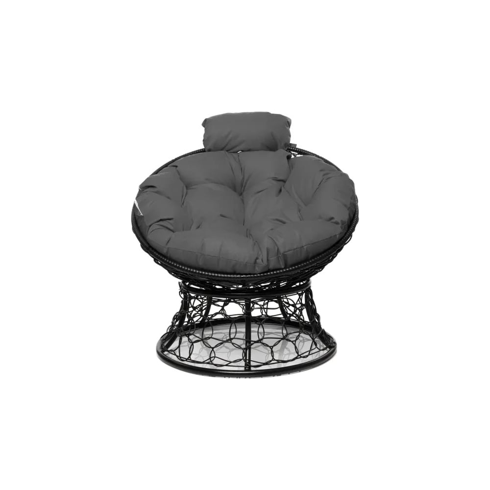 Кресло M-GROUP ПАПАСАН мини с ротангом чёрное, серая подушка 12070409
