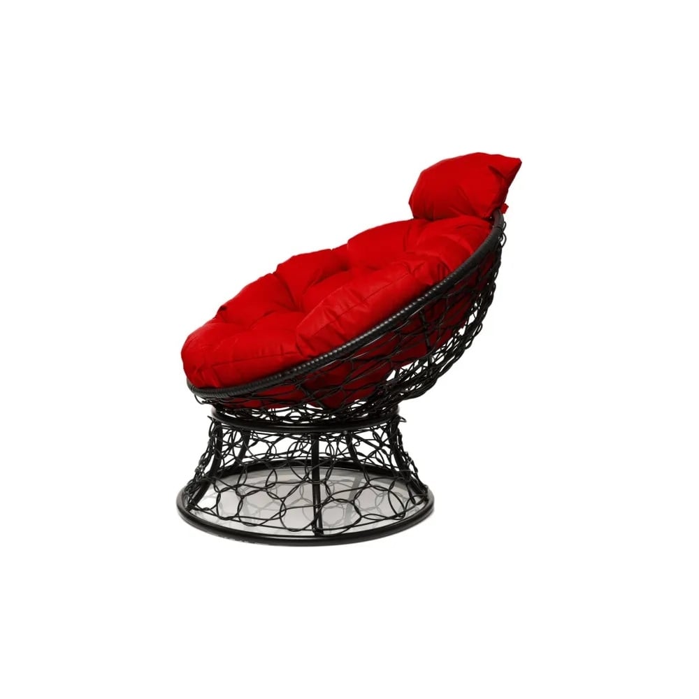 Кресло M-GROUP ПАПАСАН мини с ротангом чёрное, красная подушка 12070406