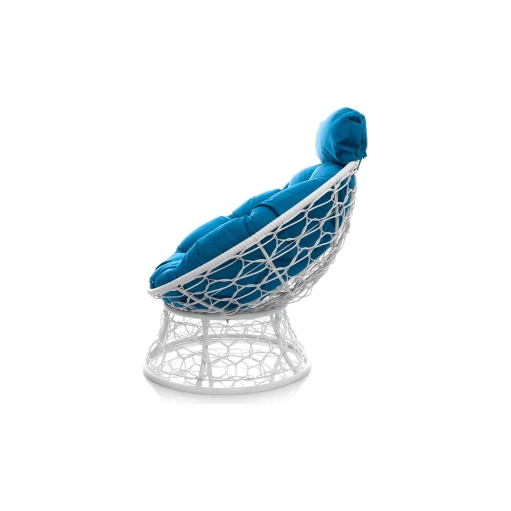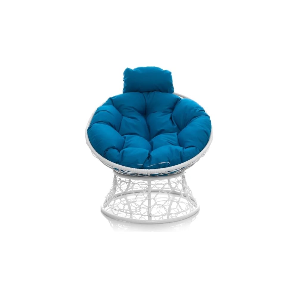 Кресло M-GROUP ПАПАСАН мини с ротангом белое, голубая подушка 12070103