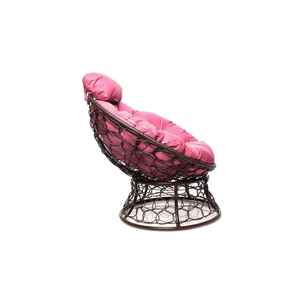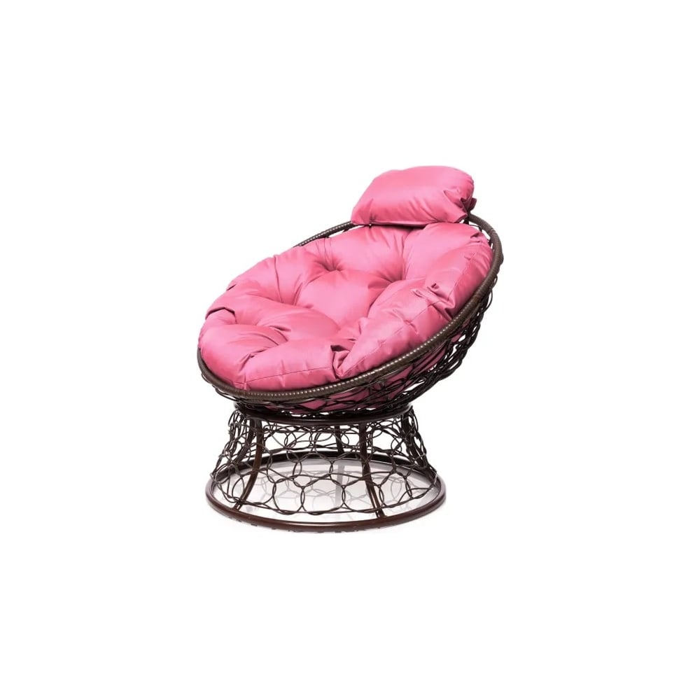 Кресло M-GROUP ПАПАСАН мини с ротангом коричневое, розовая подушка 12070208