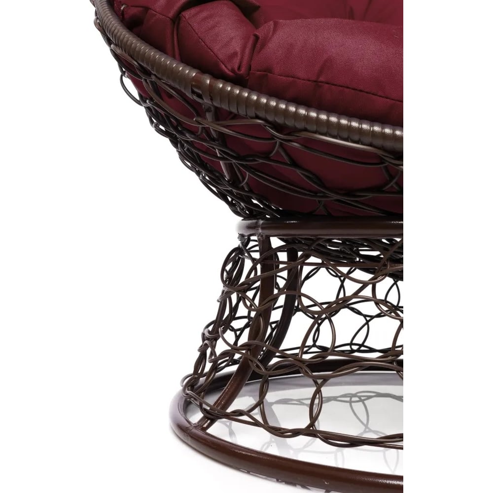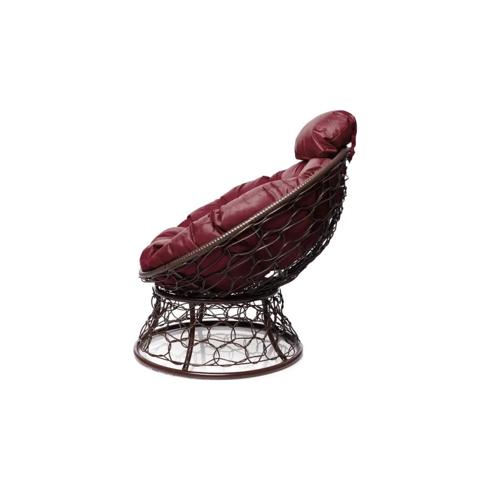 Кресло M-GROUP ПАПАСАН мини с ротангом коричневое, бордовая подушка 12070202