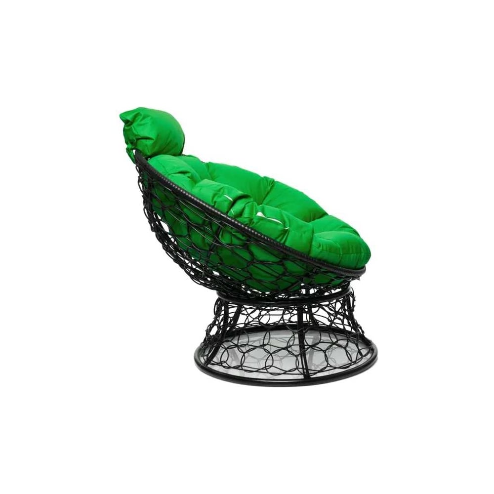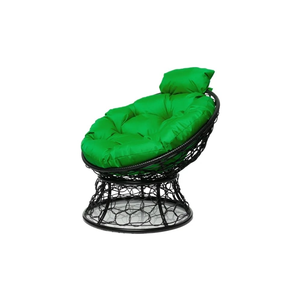Кресло M-GROUP ПАПАСАН мини с ротангом чёрное, зелёная подушка 12070404