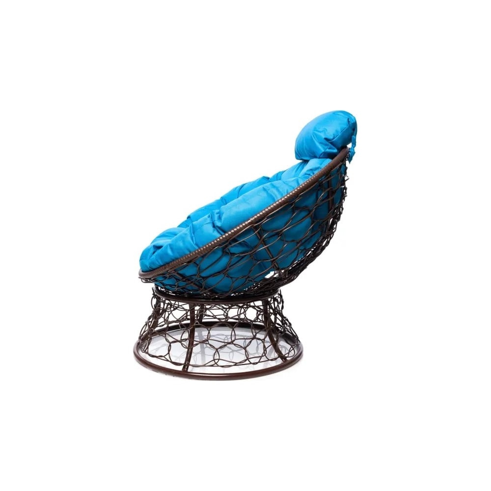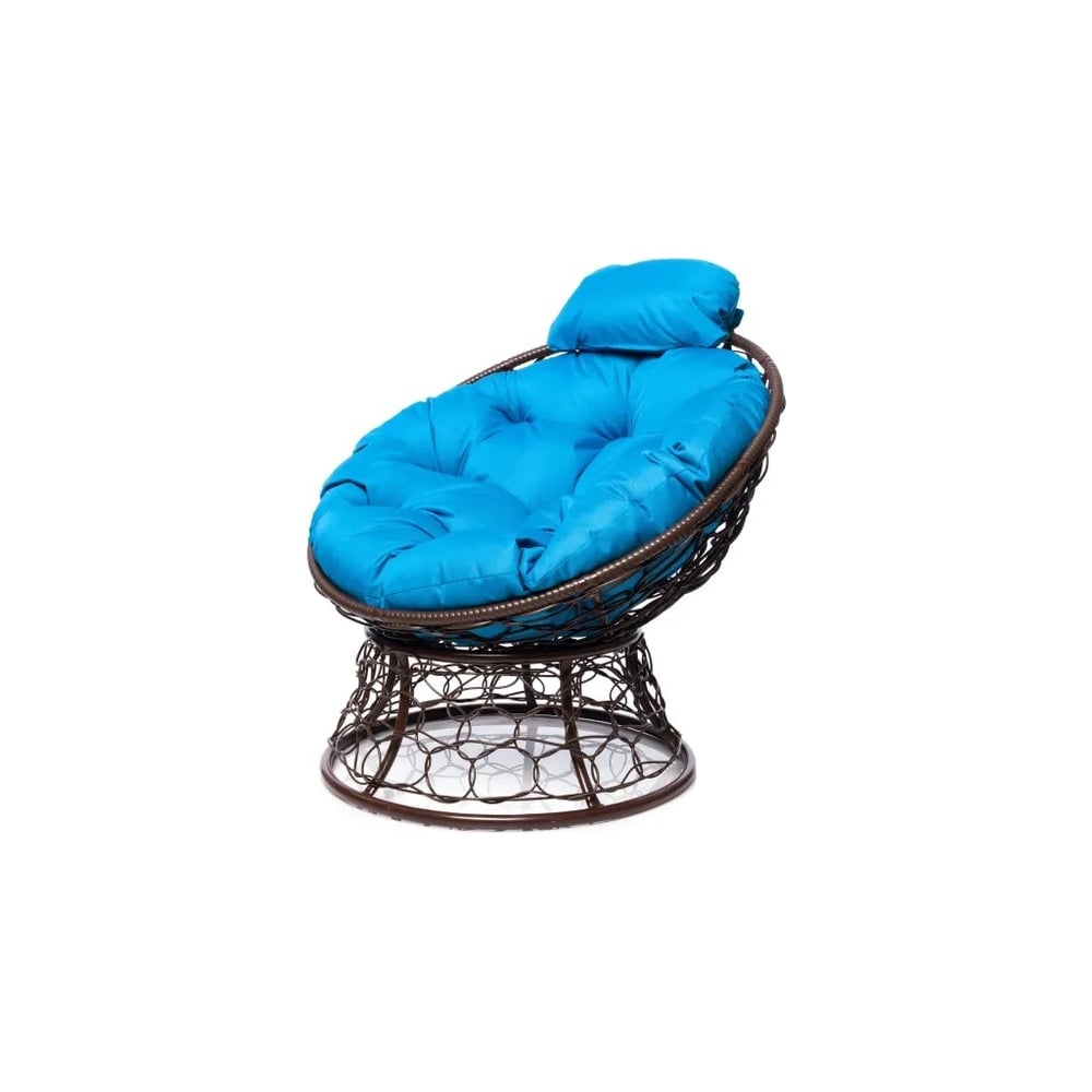 Кресло M-GROUP ПАПАСАН мини с ротангом коричневое, голубая подушка 12070203