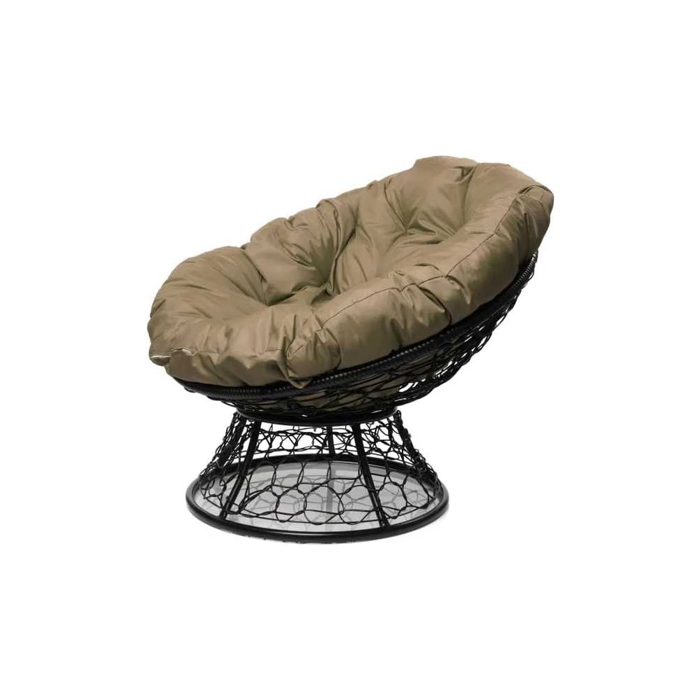 Кресло M-GROUP ПАПАСАН с ротангом чёрное, бежевая подушка 12020401