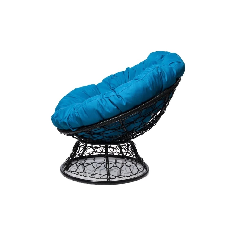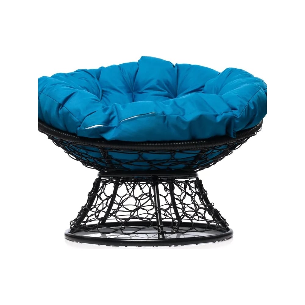 Кресло M-GROUP ПАПАСАН с ротангом чёрное, голубая подушка 12020403