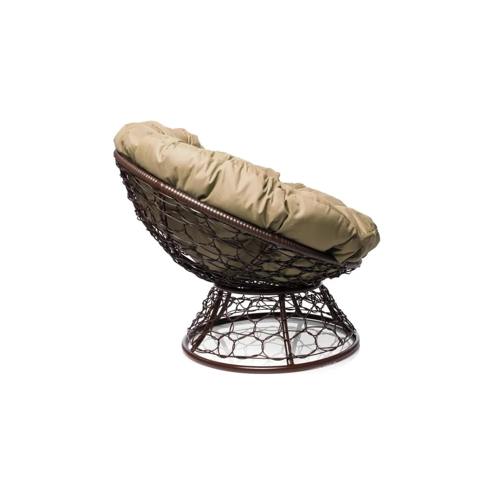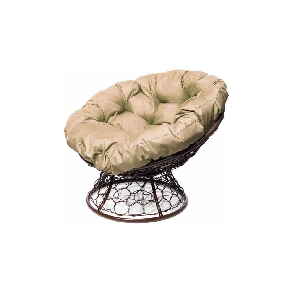 Кресло M-GROUP ПАПАСАН с ротангом коричневое, бежевая подушка 12020201