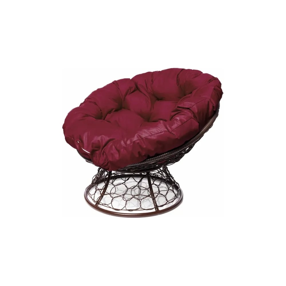 Кресло M-GROUP ПАПАСАН с ротангом коричневое, бордовая подушка 12020202