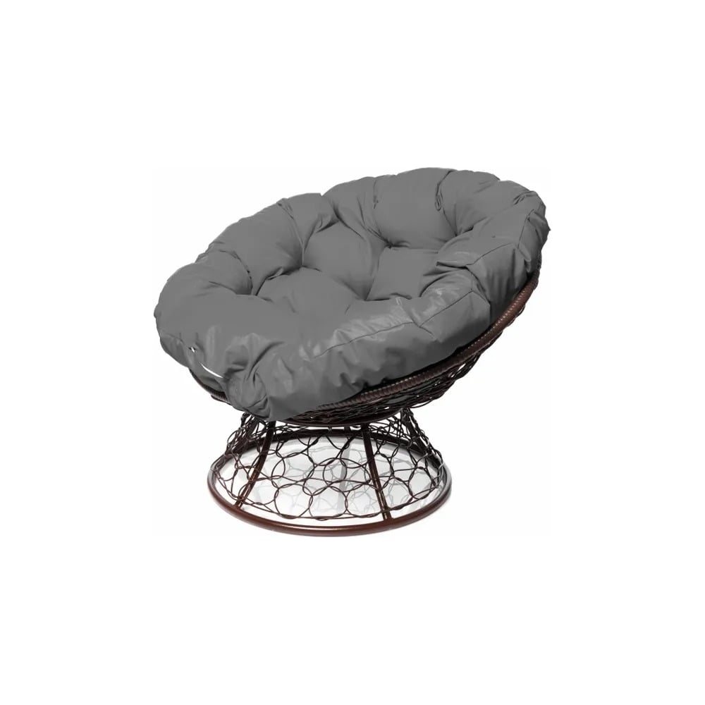 Кресло M-GROUP ПАПАСАН с ротангом коричневое, серая подушка 12020209