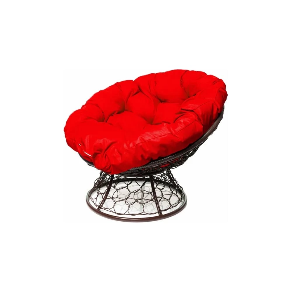 Кресло M-GROUP ПАПАСАН с ротангом коричневое, красная подушка 12020206