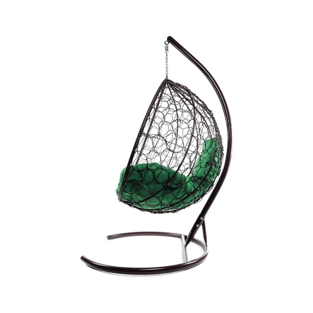 Подвесное кресло M-GROUP КАПЛЯ с ротангом коричневое, зелёная подушка 11020204