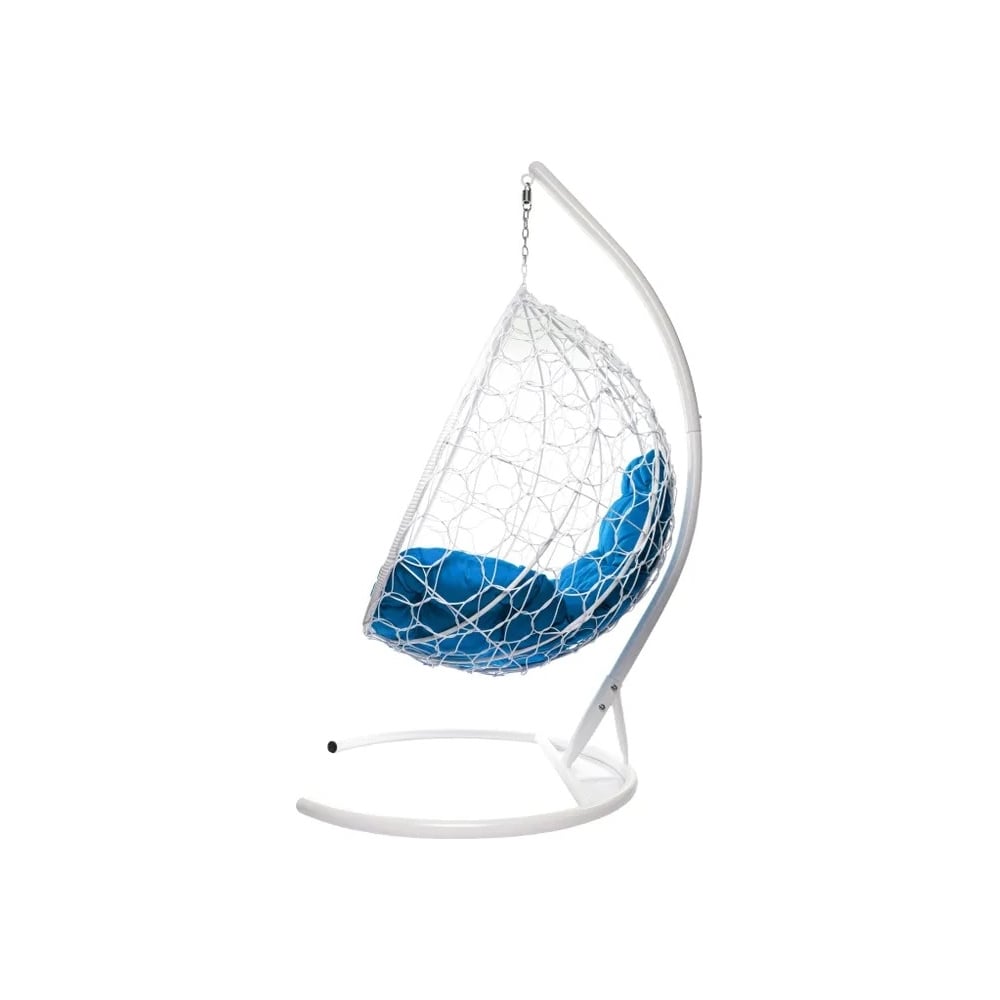 Подвесное кресло M-GROUP КАПЛЯ с ротангом белое, синяя подушка 11020110
