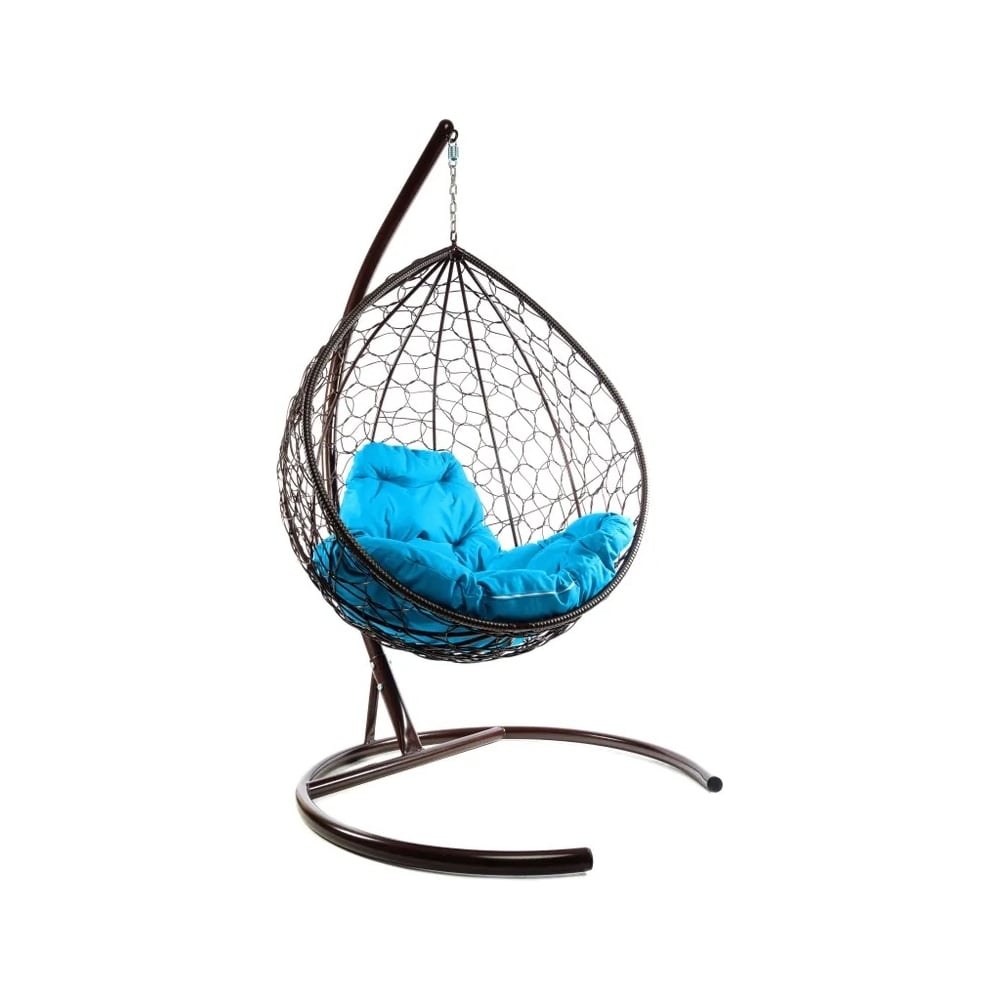 Подвесное кресло M-GROUP КАПЛЯ с ротангом коричневое, голубая подушка 11020203