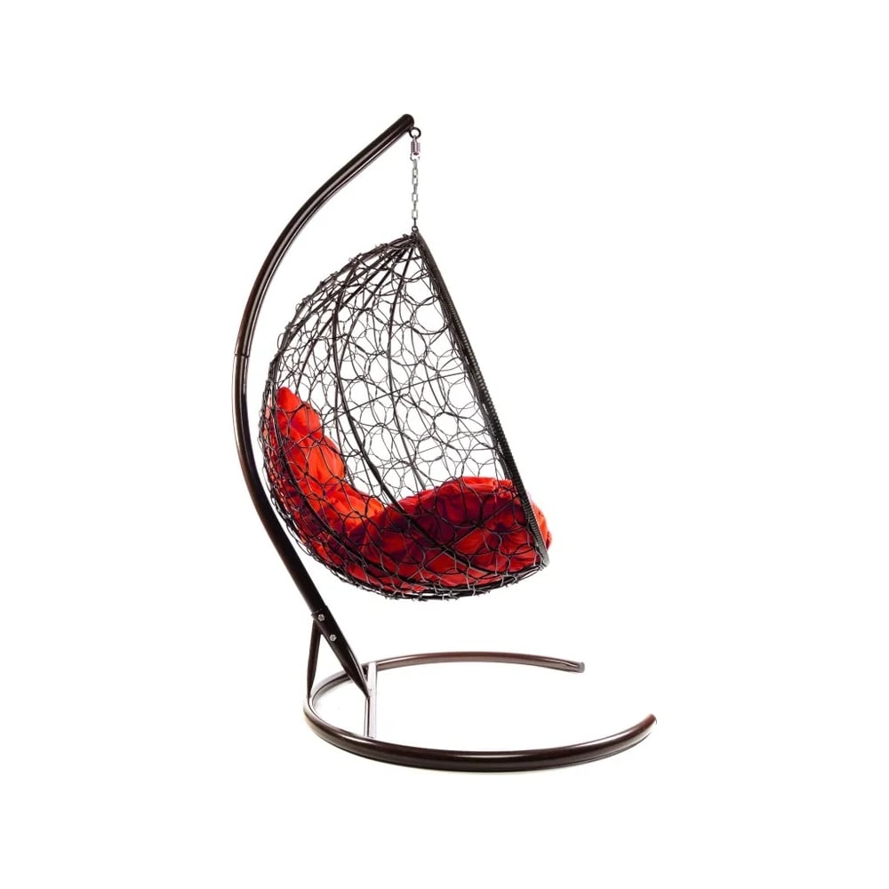 Подвесное кресло M-GROUP КАПЛЯ с ротангом коричневое, красная подушка 11020206