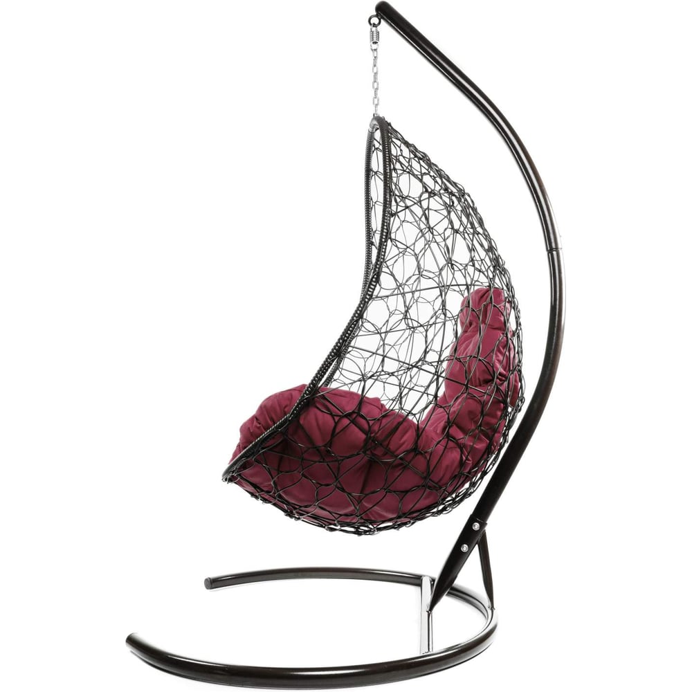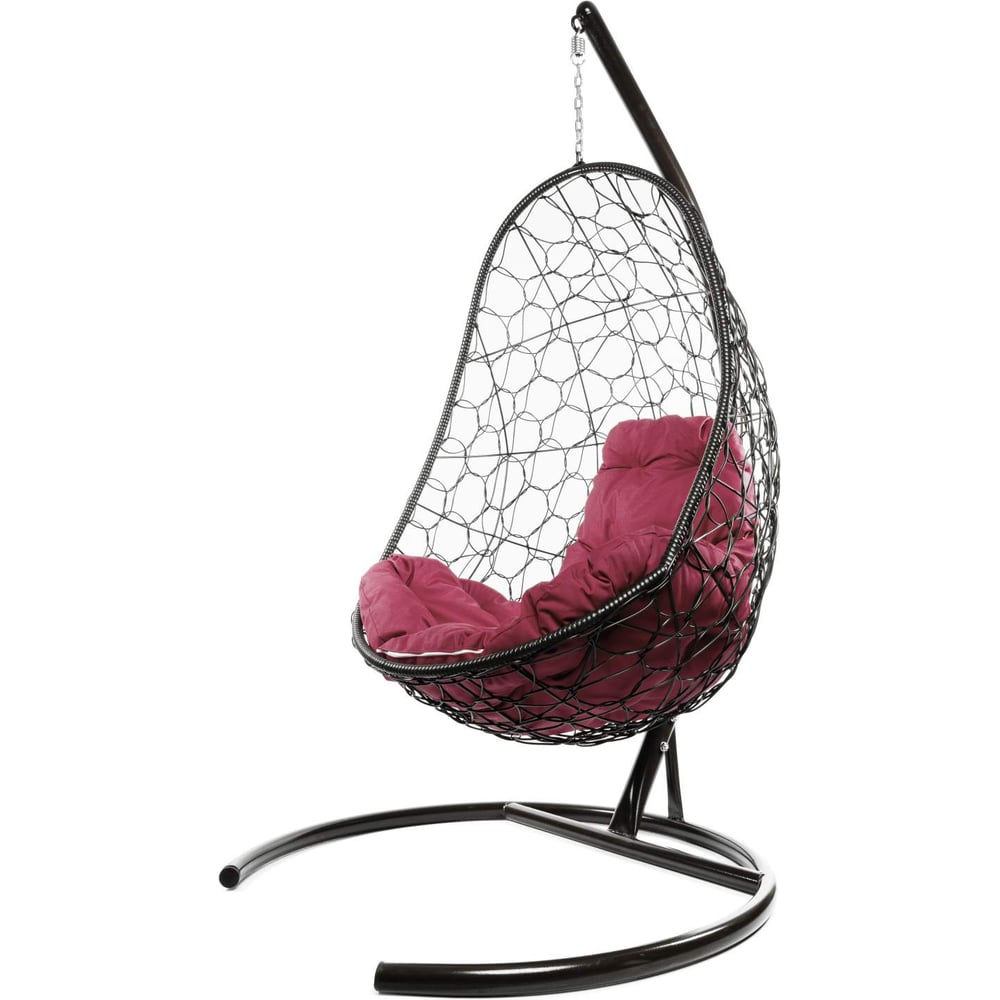 Подвесное кресло M-GROUP ОВАЛ с ротангом коричневое, бордовая подушка 11140202