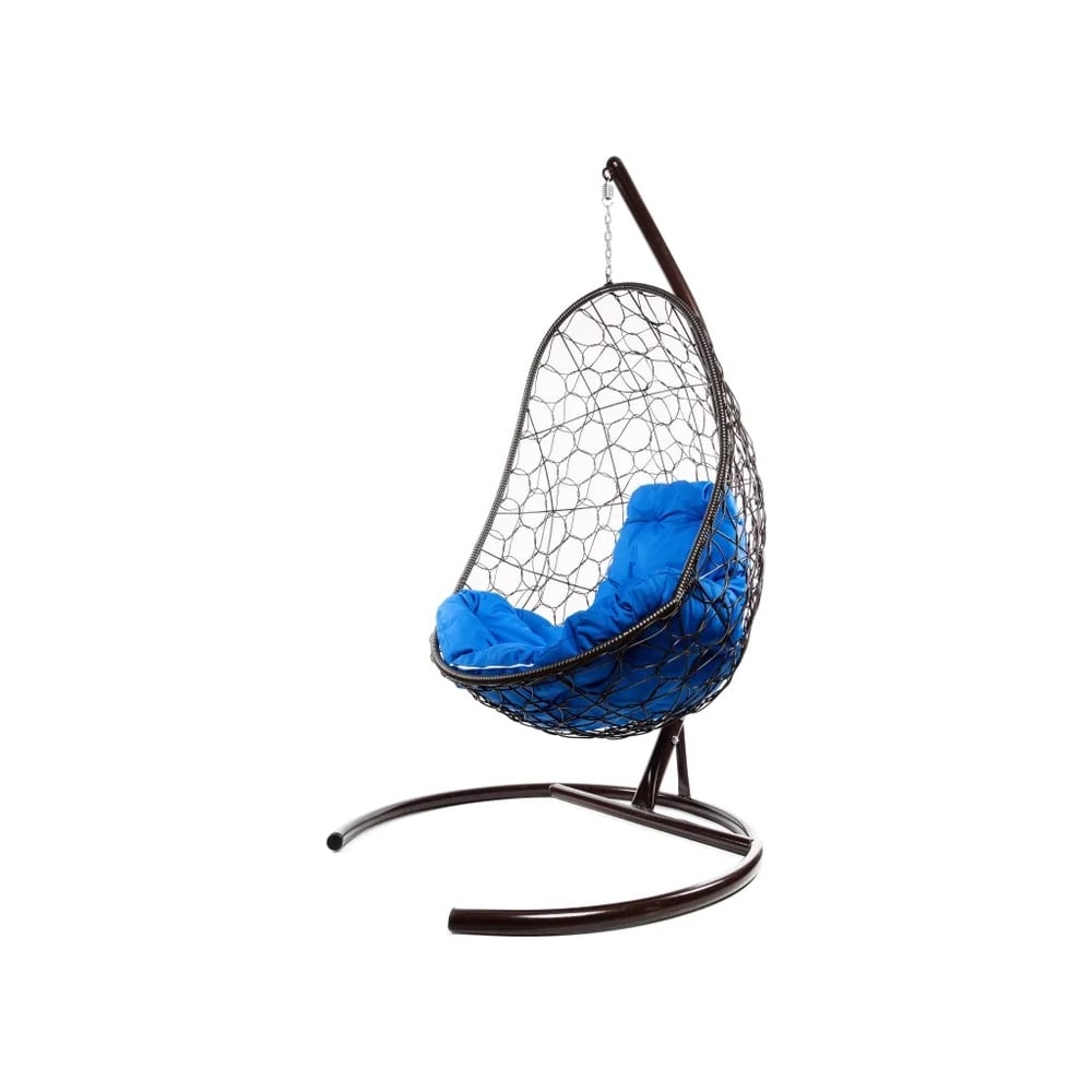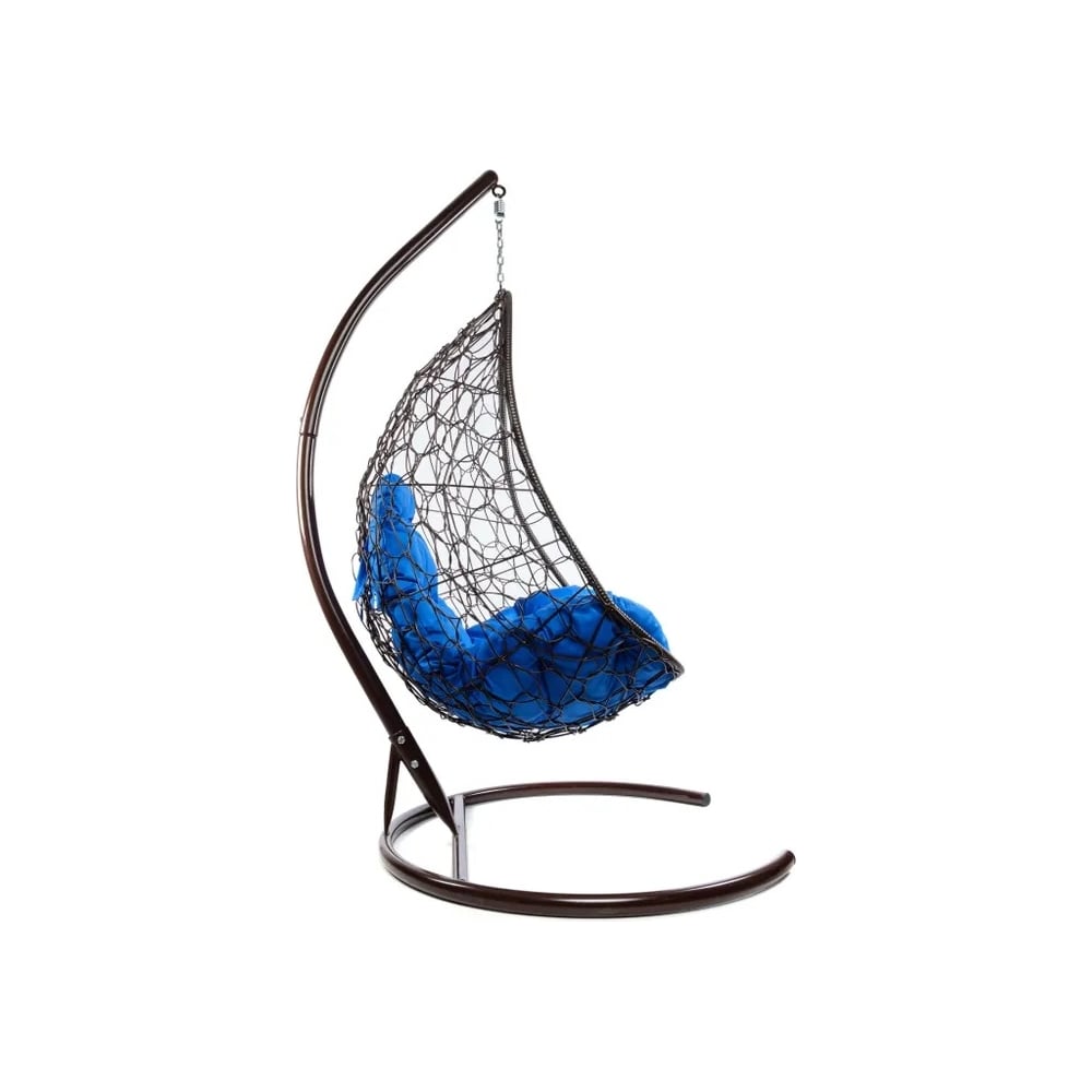 Подвесное кресло M-GROUP ОВАЛ с ротангом коричневое, синяя подушка 11140210