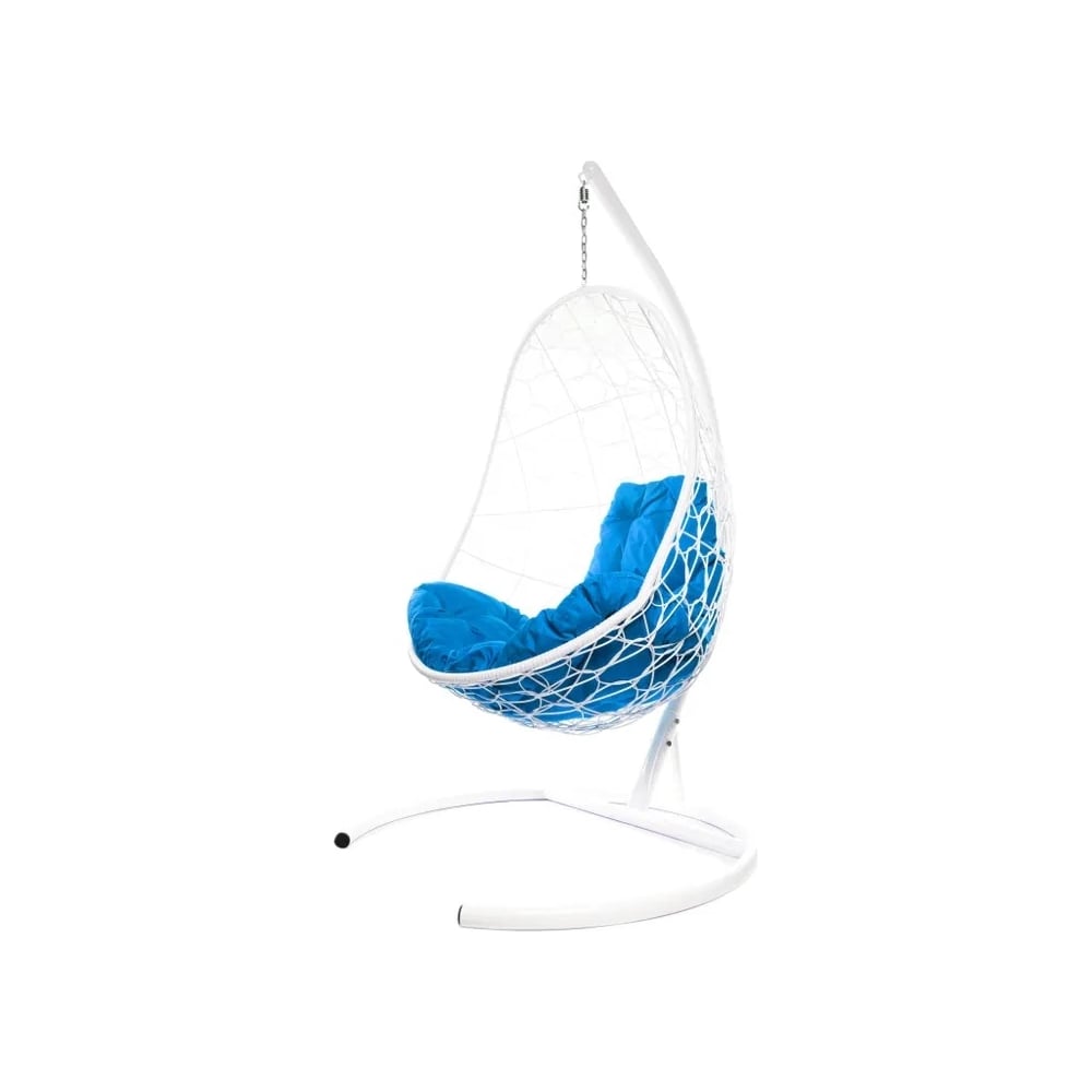 Подвесное кресло M-GROUP ОВАЛ с ротангом белое, синяя подушка 11140110