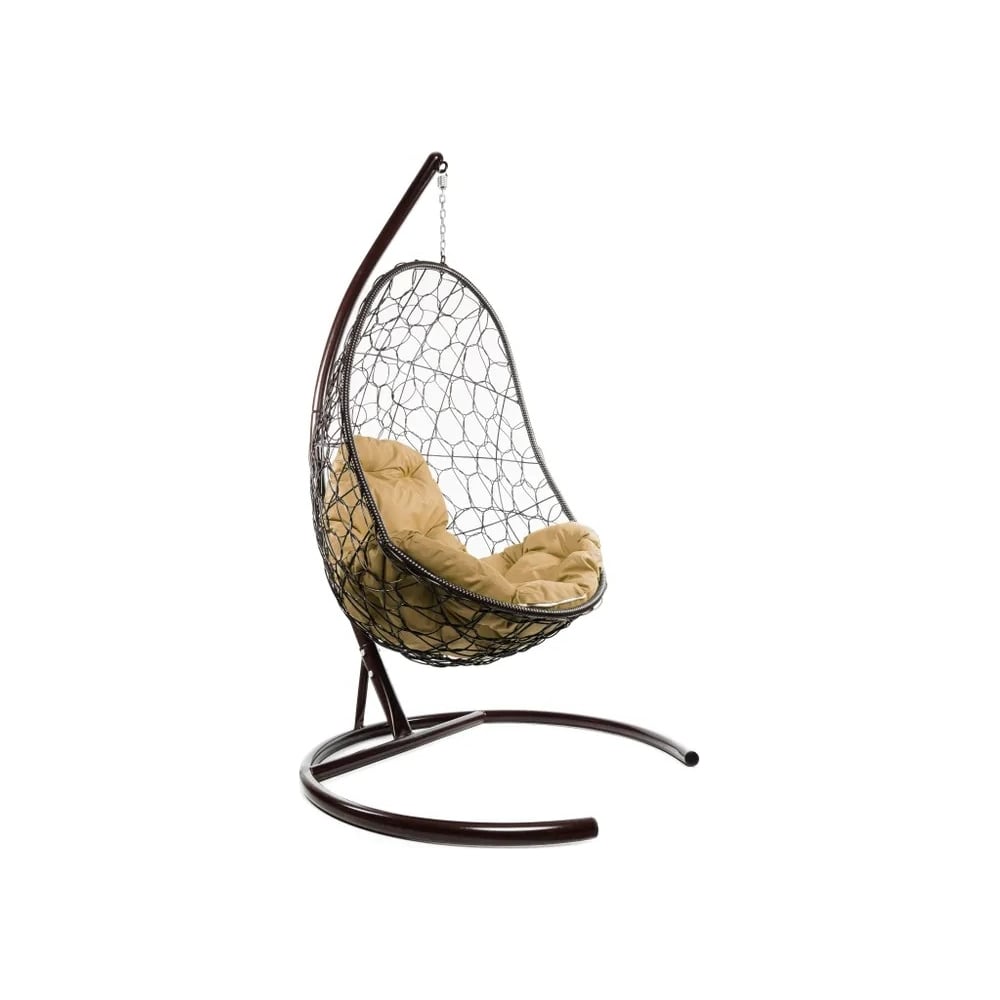Подвесное кресло M-GROUP ОВАЛ с ротангом коричневое, бежевая подушка 11140201