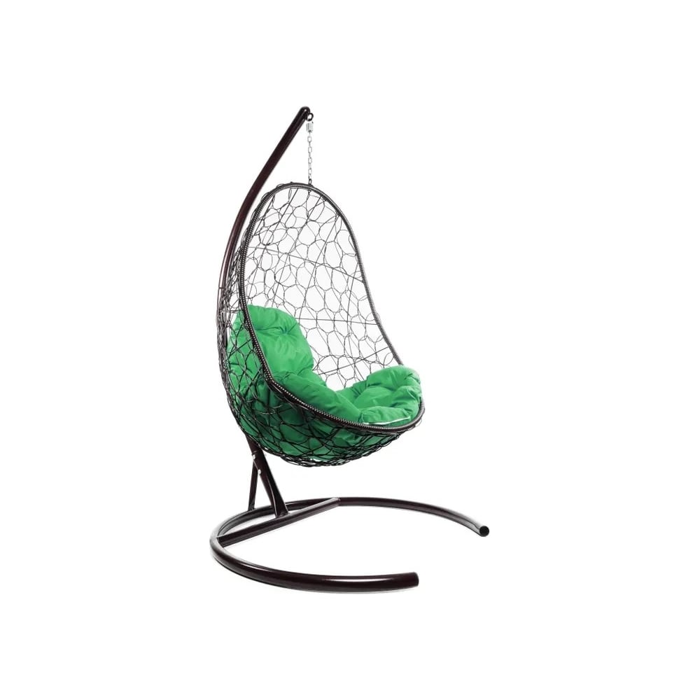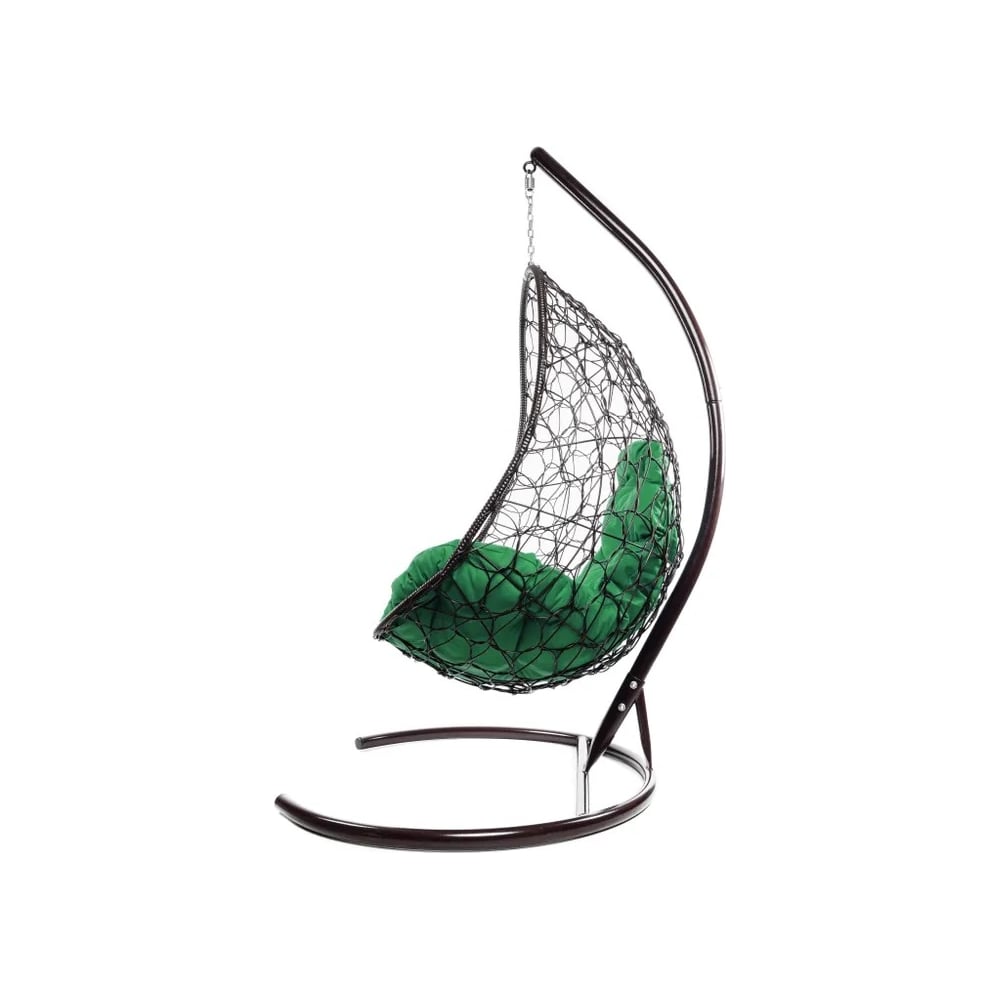 Подвесное кресло M-GROUP ОВАЛ с ротангом коричневое, зелёная подушка 11140204
