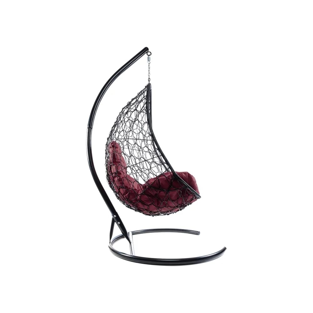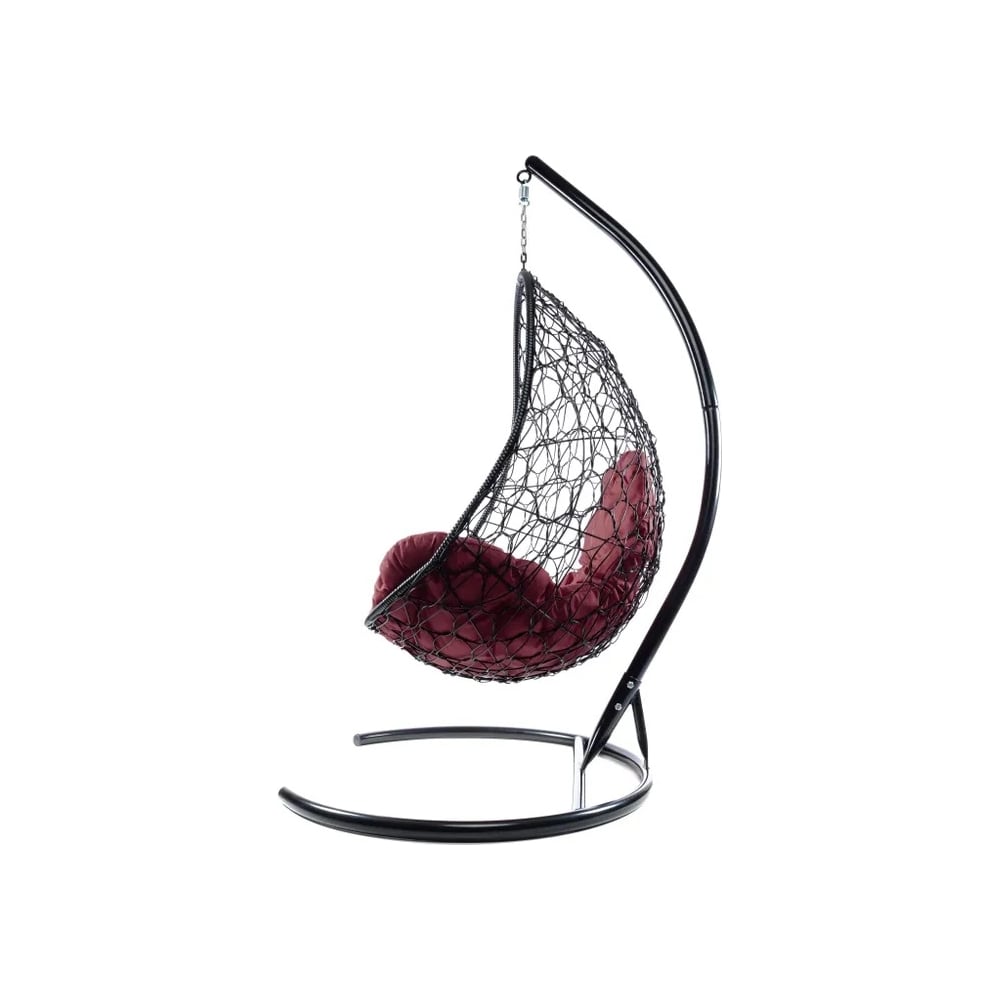 Подвесное кресло M-GROUP ОВАЛ с ротангом чёрное, бордовая подушка 11140402
