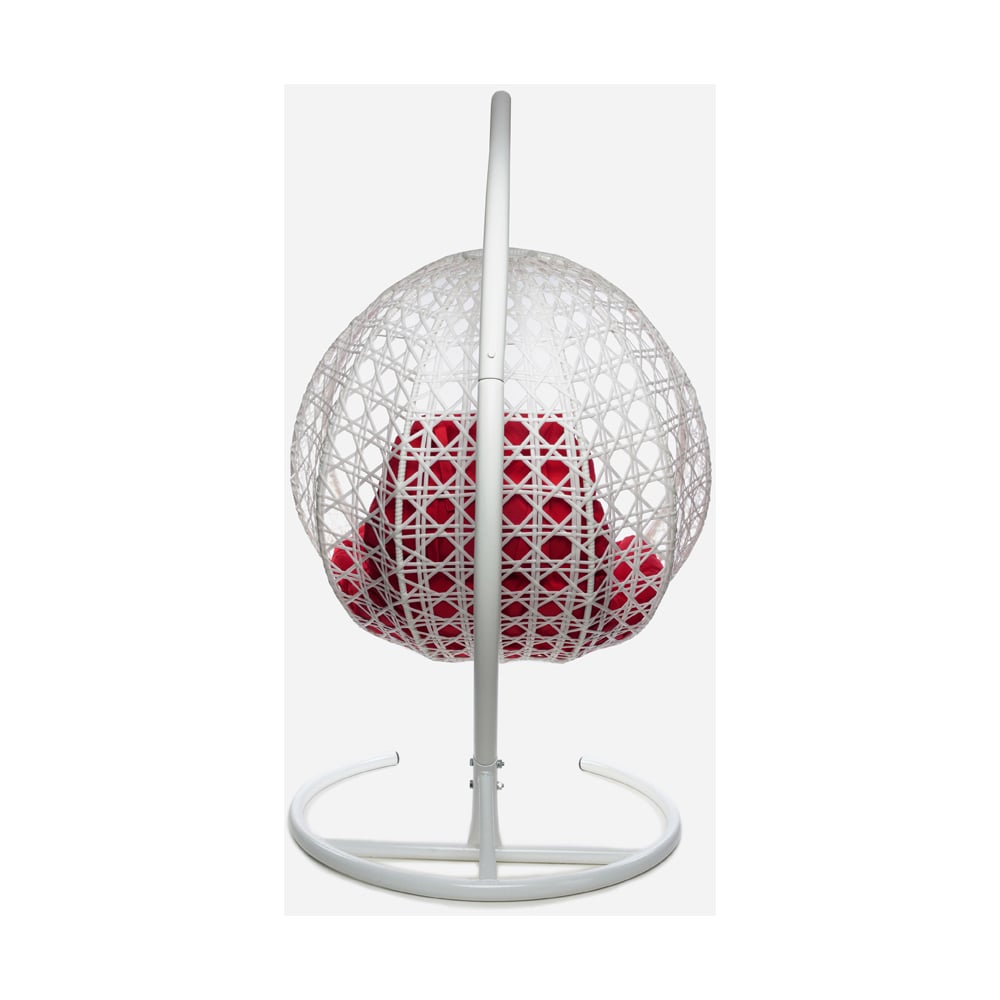 Подвесное кресло M-GROUP КРУГ ЛЮКС с ротангом белое, красная подушка 11060106
