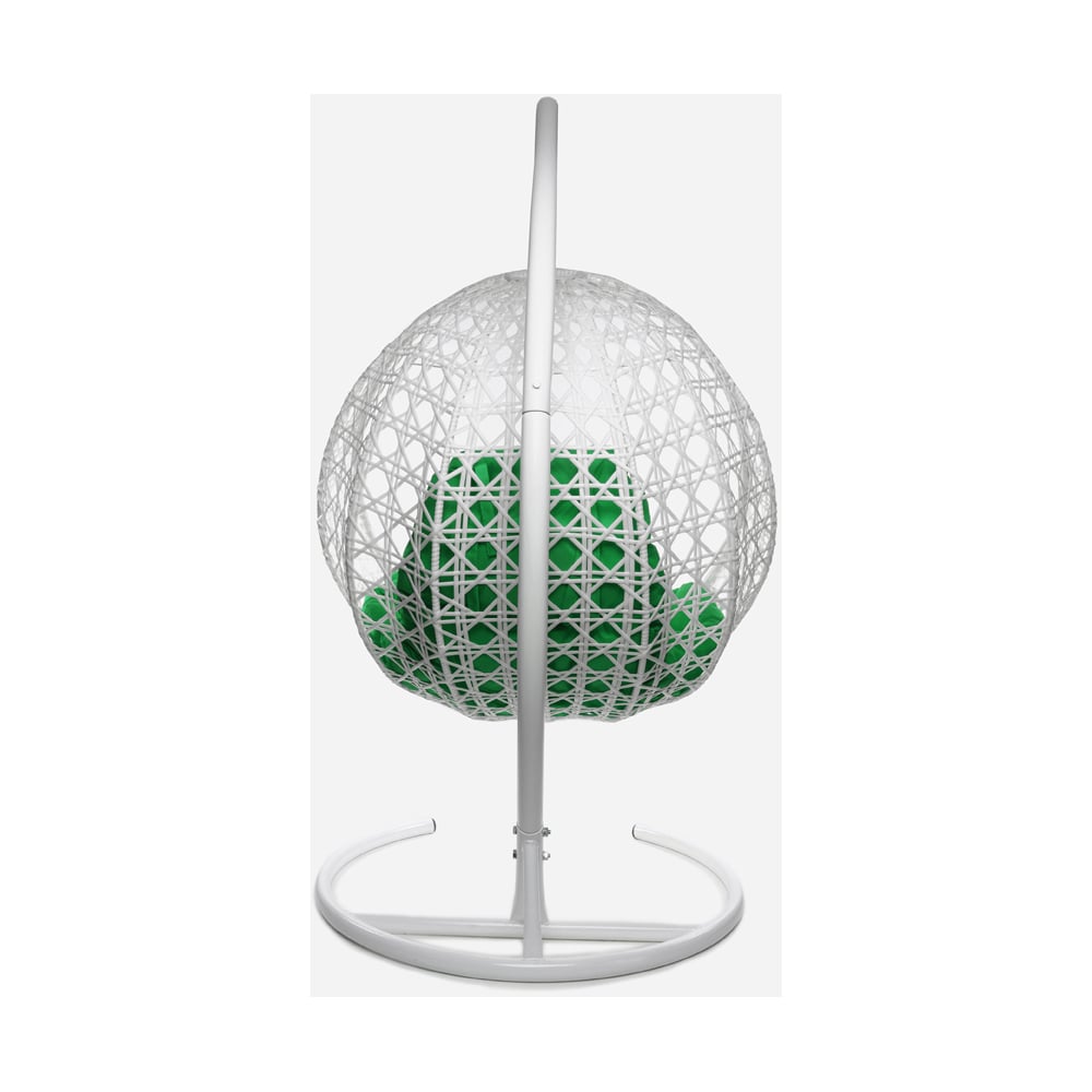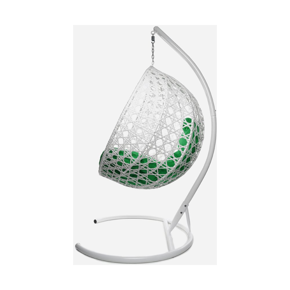 Подвесное кресло M-GROUP КРУГ ЛЮКС с ротангом белое, зелёная подушка 11060104