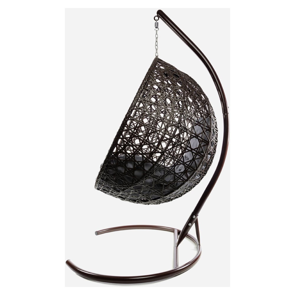Подвесное кресло M-GROUP КРУГ ЛЮКС с ротангом коричневое, серая подушка 11060209