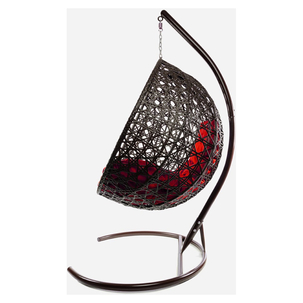 Подвесное кресло M-GROUP КРУГ ЛЮКС с ротангом коричневое, красная подушка 11060206