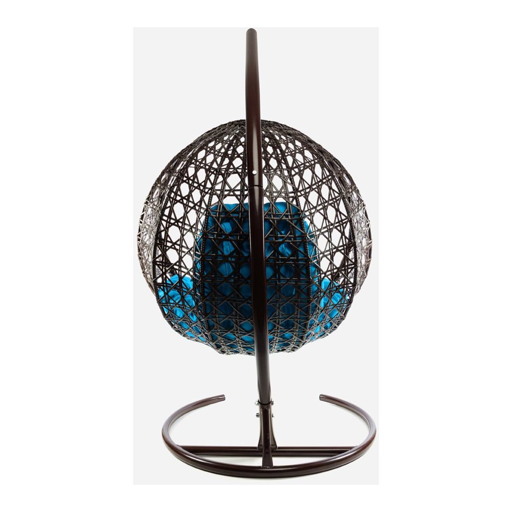 Подвесное кресло M-GROUP КРУГ ЛЮКС с ротангом коричневое, голубая подушка 11060203