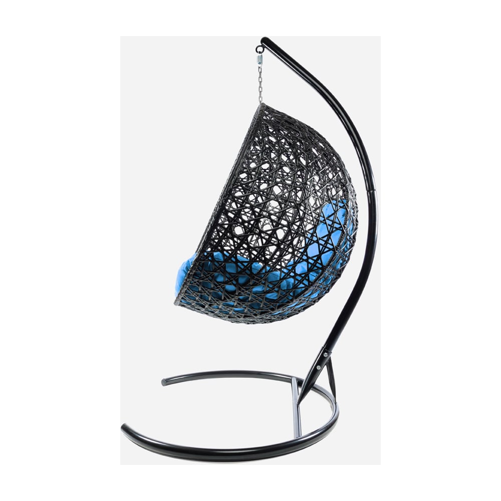 Подвесное кресло M-GROUP КРУГ ЛЮКС с ротангом чёрное, голубая подушка 11060403