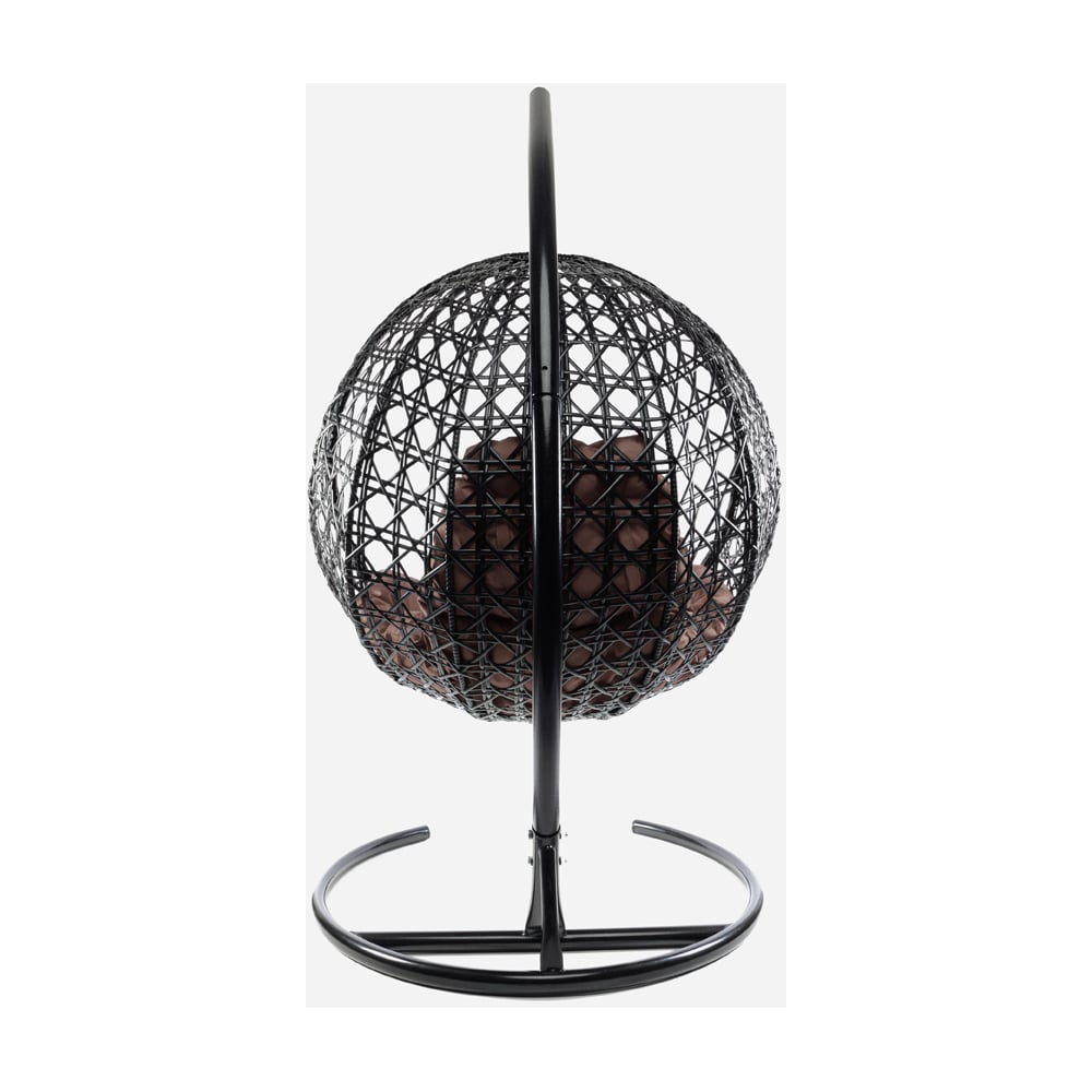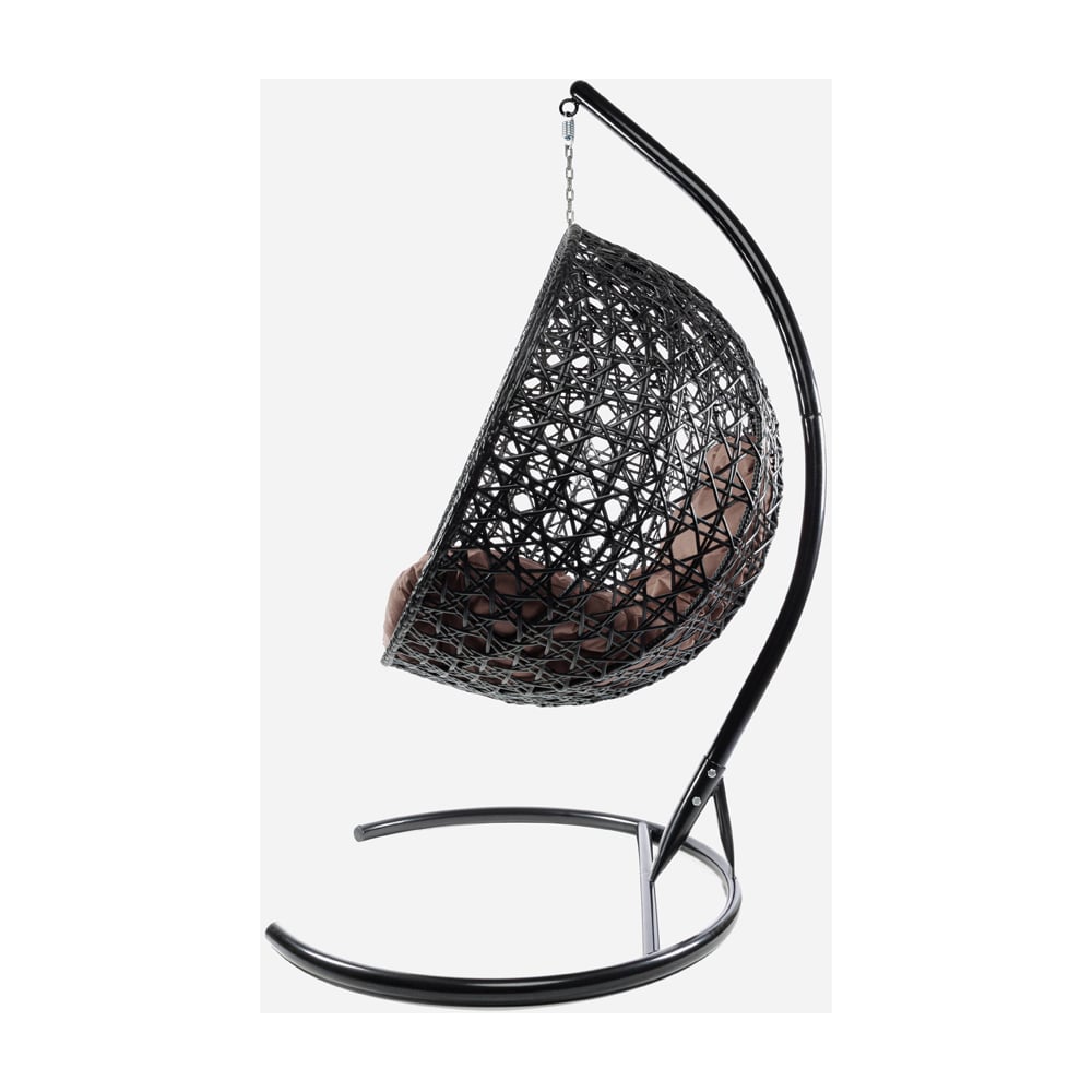 Подвесное кресло M-GROUP КРУГ ЛЮКС с ротангом чёрное, коричневая подушка 11060405