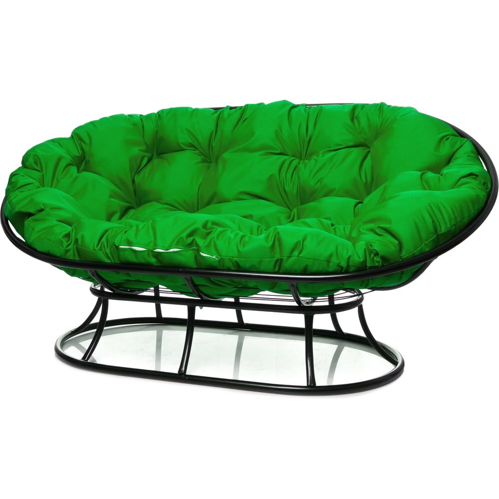 Диван M-GROUP МАМАСАН без ротанга чёрное, зелёная подушка 12100404