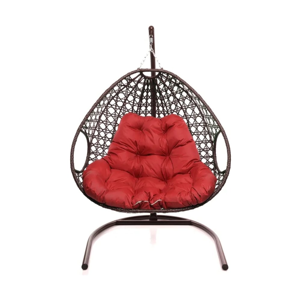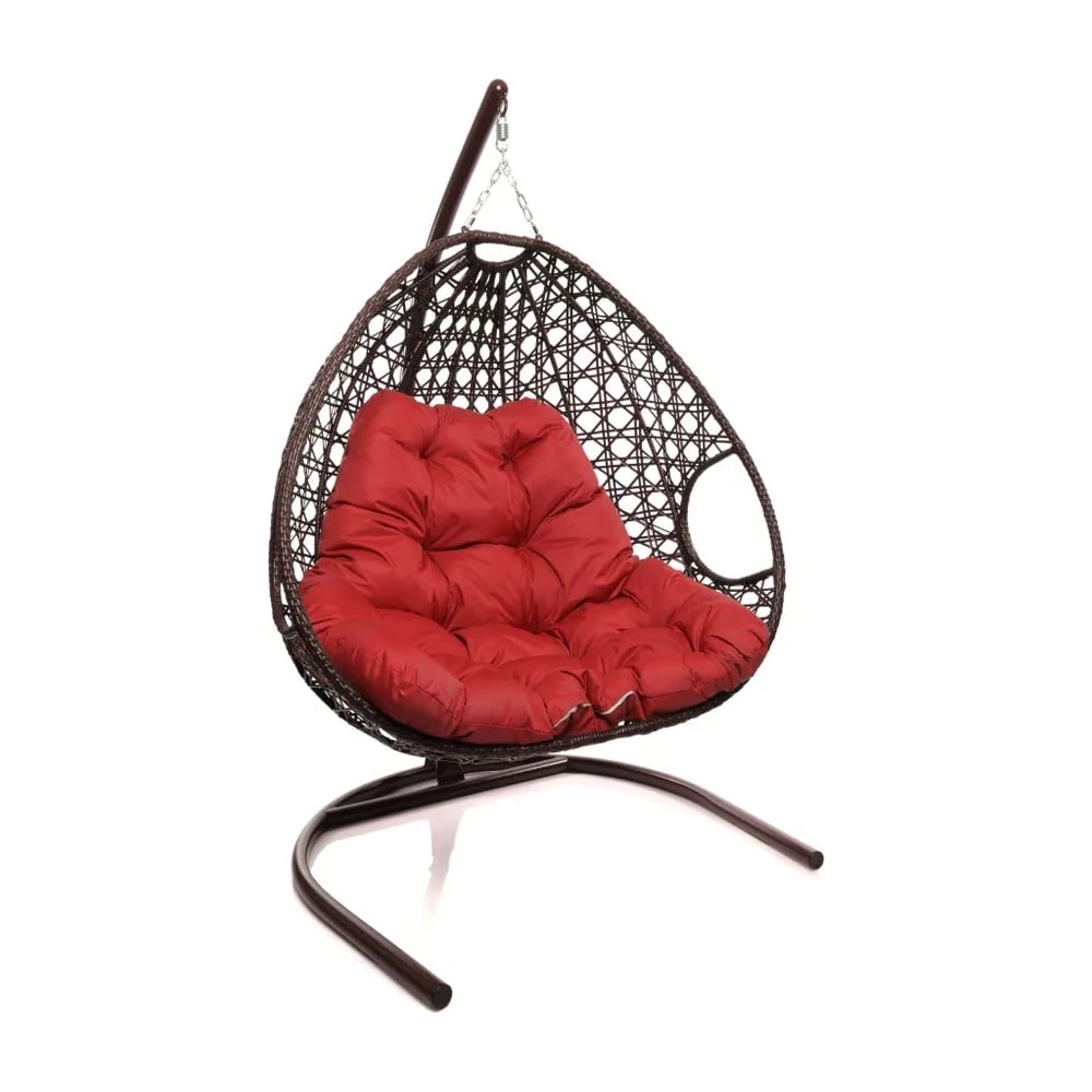 Подвесное кресло M-GROUP ДЛЯ ДВОИХ ЛЮКС с ротангом коричневое, красная подушка 11510206