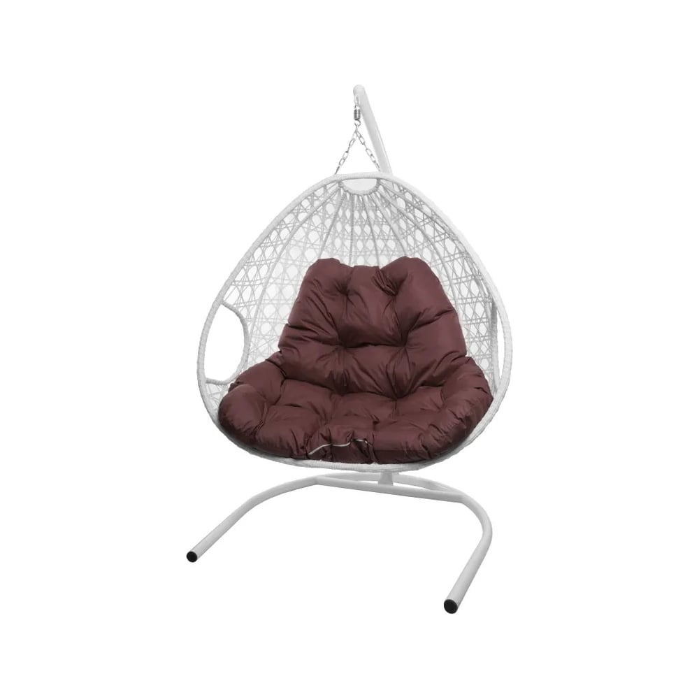 Подвесное кресло M-GROUP ДЛЯ ДВОИХ ЛЮКС с ротангом белое, бордовая подушка 11510102