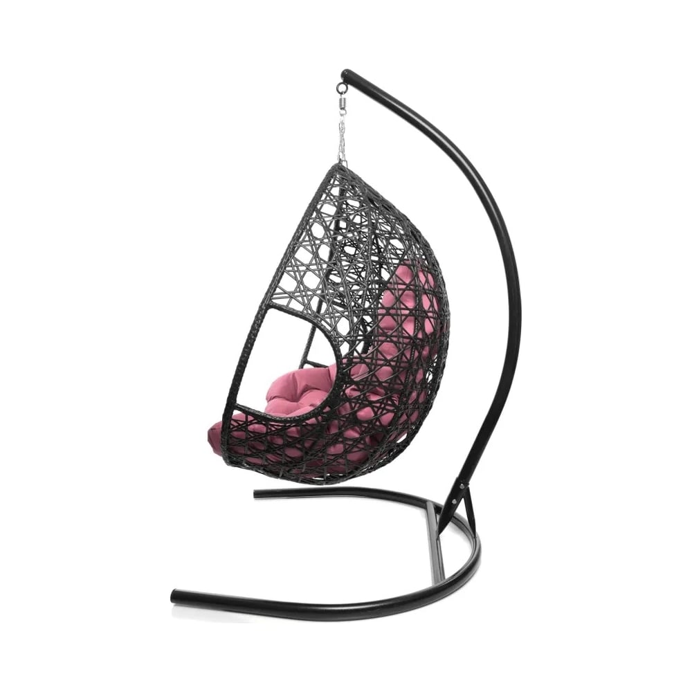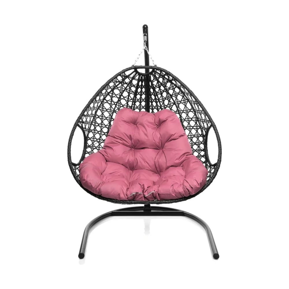 Подвесное кресло M-GROUP ДЛЯ ДВОИХ ЛЮКС с ротангом чёрное, розовая подушка 11510408