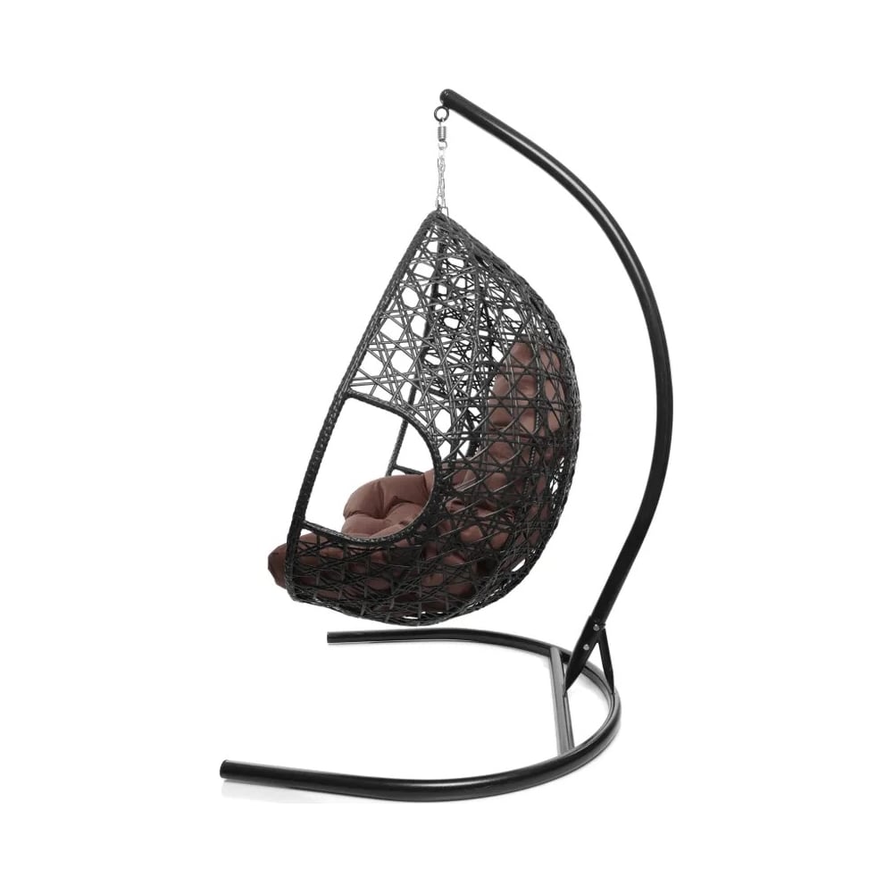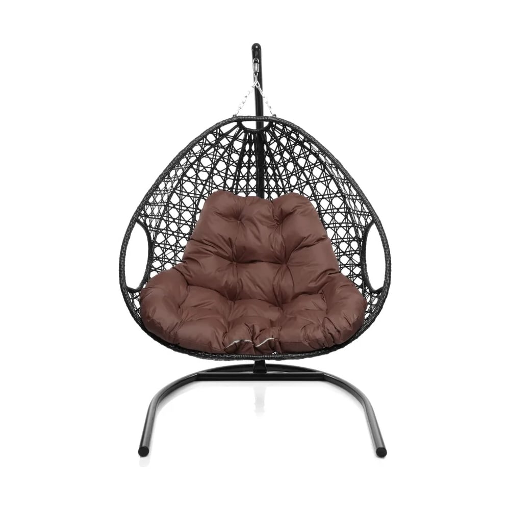 Подвесное кресло M-GROUP ДЛЯ ДВОИХ ЛЮКС с ротангом чёрное, коричневая подушка 11510405