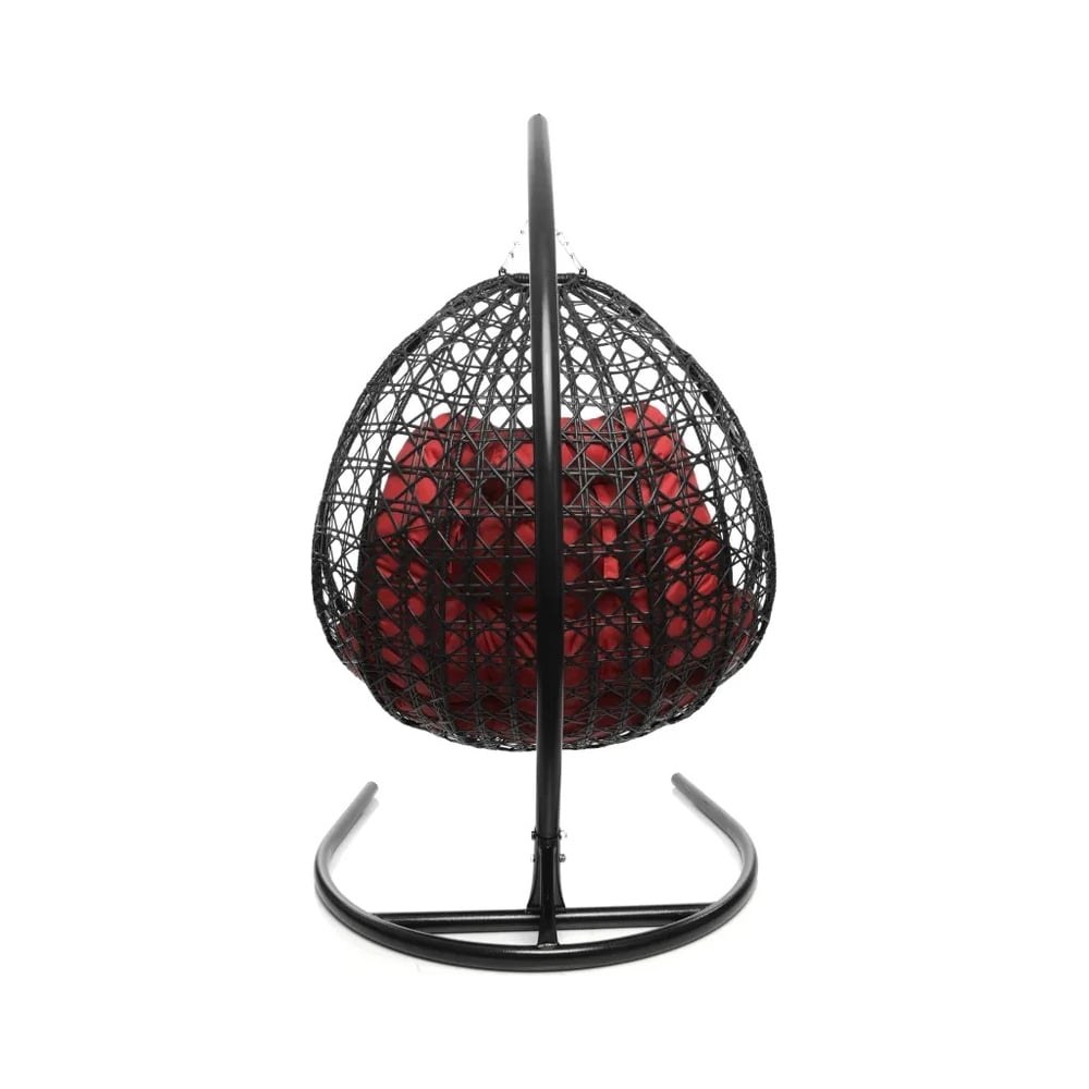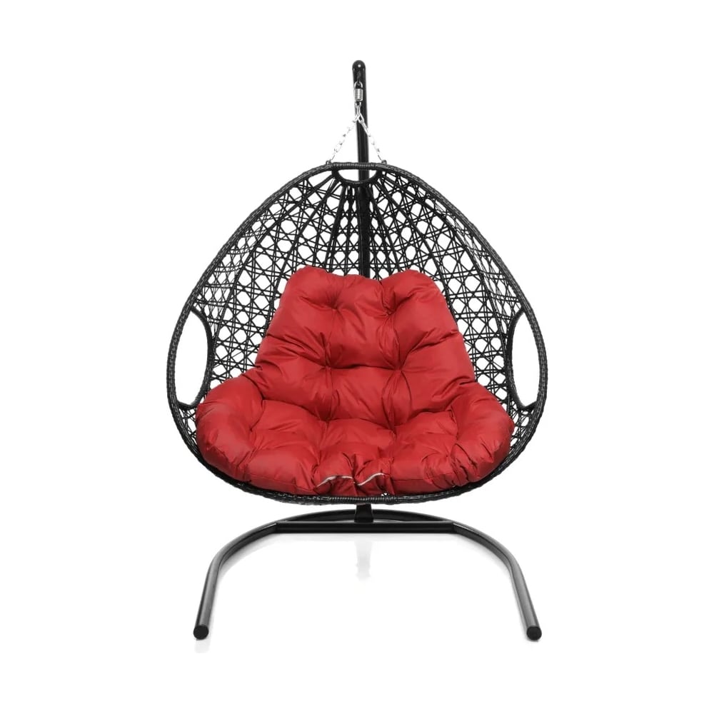 Подвесное кресло M-GROUP ДЛЯ ДВОИХ ЛЮКС с ротангом чёрное, красная подушка 11510406
